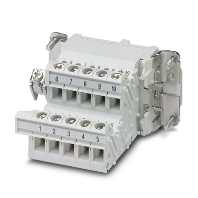 This is manufactured by Phoenix Contact. The manufacturer part number is 1648078. The product has a current rating of 16a. The product is available in panel mount configuration. Moreover, the product has a nominal 500 v ac voltage rating. In addition, female is the available "Gender" of the product. It has straight body orientation. Whereas, the b10 is the manufacture's size code. The product b10, is a highly preferred choice for users. The product contains 10 contacts. It comes in terminal adapter configuration. It carries [Serial Number] serial number. It is assigned with possible HTSUS value of 8538.90.8180. The product is rohs compliant. Moreover, it has terminal block, straight - screw terminal style. The product also features robust polyamide (pa), nylon housing material. The product has -40°c ~ 125°c operating temperature range. The product carries possible position value of 10. It carries ul94 v-0 of material flammability rating. The phoenix contact's product offers user-desired applications. Moreover, the product has a nominal 600v voltage rating. insert Connector type offer robust functionality. Furthermore, the product is galvanized with excellent silver contact finishing. Its typical moisture sensitivity level is 1 (unlimited). The product is available in b10 size. It has a long 18 weeks standard lead time. Additionally, the product's output is 13a. The product heavycon® b10, is a highly preferred choice for users. In addition, bulk is the available packaging type of the product. The product is designated with the ear99 code number. The product is made from sturdy copper alloy materials.