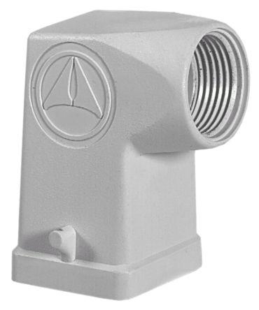 This is C 146 Series Right Angle Cable Mount Connector Hood manufactured by Amphenol. The manufacturer part number is C146 10R003 5004. The product is available in cable mount configuration. It has right angle body orientation. It has a typical thread size of m20. It features heavy mate range. It comes in connector hood configuration. It carries [Serial Number] serial number.