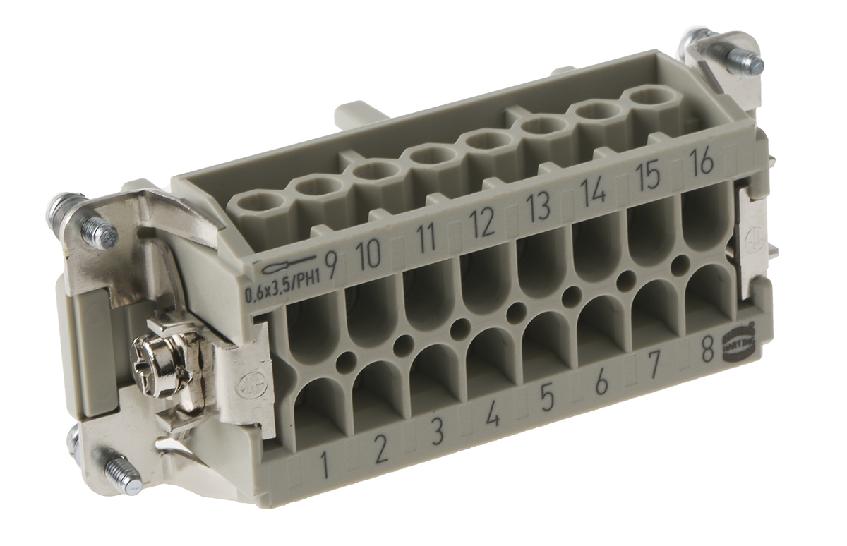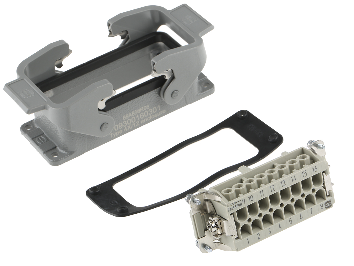 This is Han E Series 16 Way Female 16A Coupler Kit includes Housing Insert manufactured by Harting. The manufacturer part number is 09300160301+09330162701. The product has a current rating of 16a. Moreover, the product has a nominal 500 v voltage rating. In addition, female is the available "Gender" of the product. While the pole has 16 + pe format. The product han e, is a highly preferred choice for users. The product contains 16 contacts. It comes in coupler kit configuration.