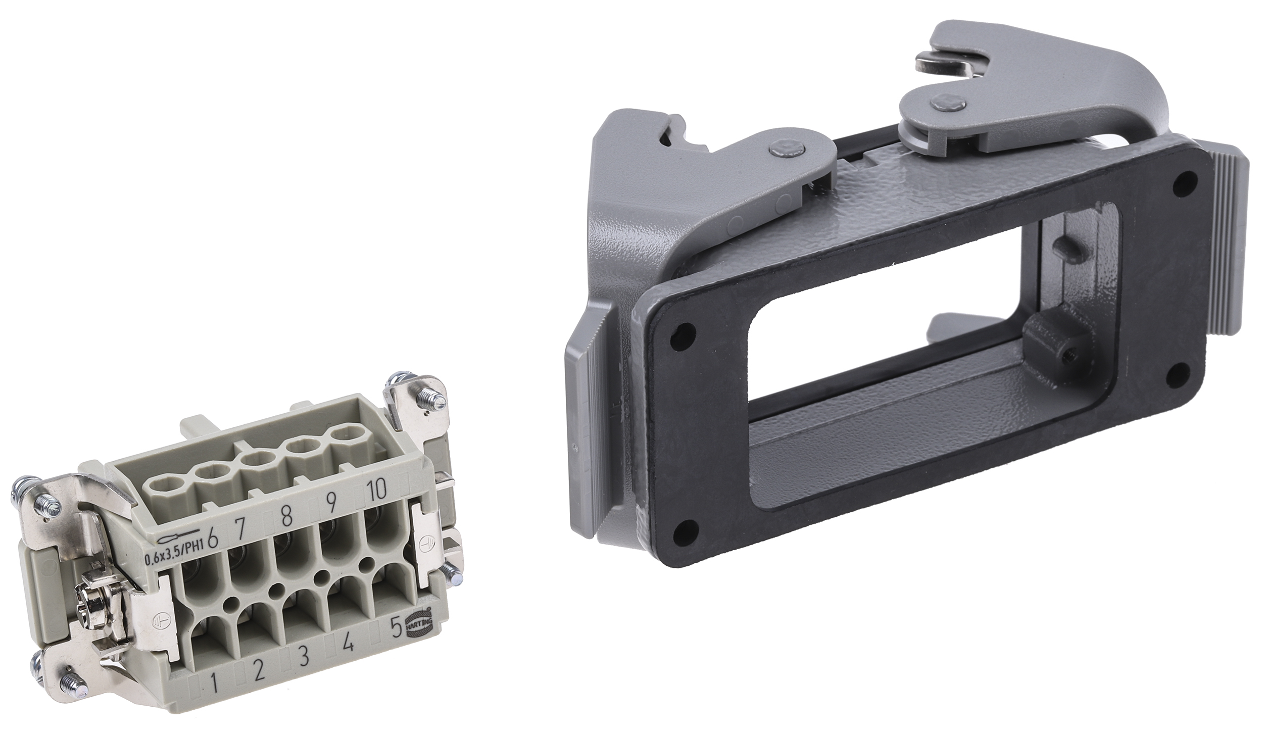 This is Han E Series 10 Way Female 16A Coupler Kit includes Housing Insert manufactured by Harting. The manufacturer part number is 09300100301+09330102701. The product has a current rating of 16a. Moreover, the product has a nominal 500 v voltage rating. In addition, female is the available "Gender" of the product. While the pole has 10 + pe format. The product han e, is a highly preferred choice for users. The product contains 10 contacts. It comes in coupler kit configuration.