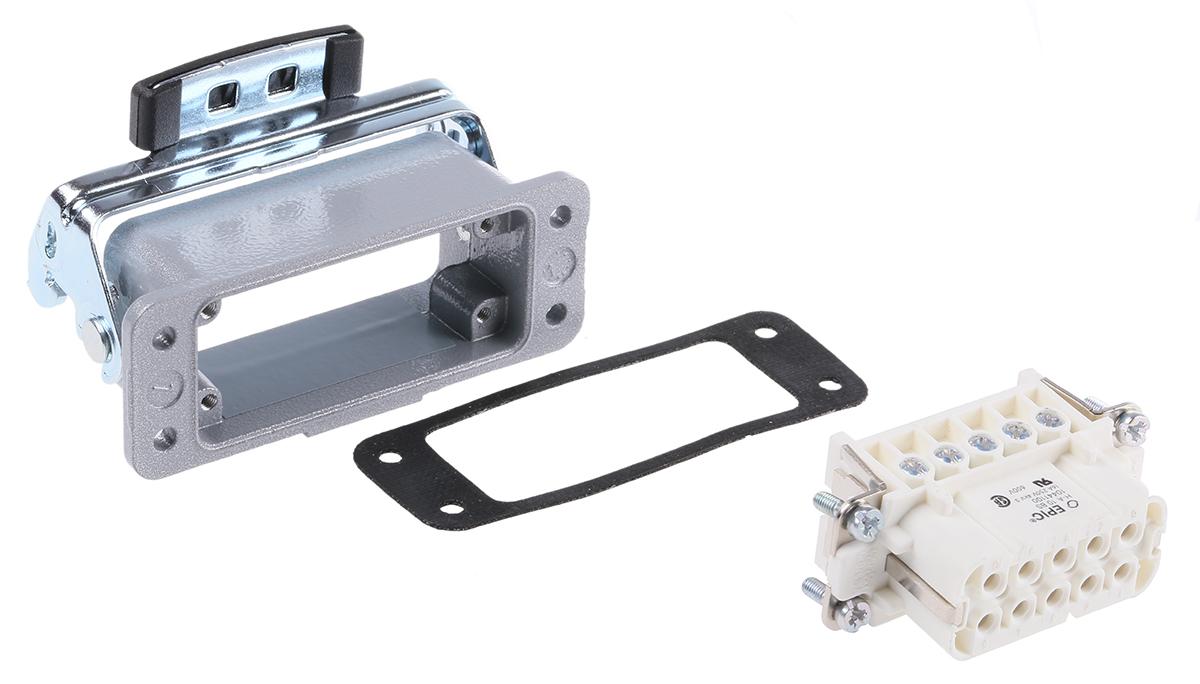This is H-A Series 10 Way Female 10A Preassembled Connector Kit manufactured by Epic Contact. The manufacturer part number is 10441100+10442000. The product has a current rating of 10a. Moreover, the product has a nominal 440 v voltage rating. In addition, female is the available "Gender" of the product. It has top entry body orientation. While the pole has 10p+e format. The product h-a, is a highly preferred choice for users. The product contains 10 contacts. It comes in connector set configuration.