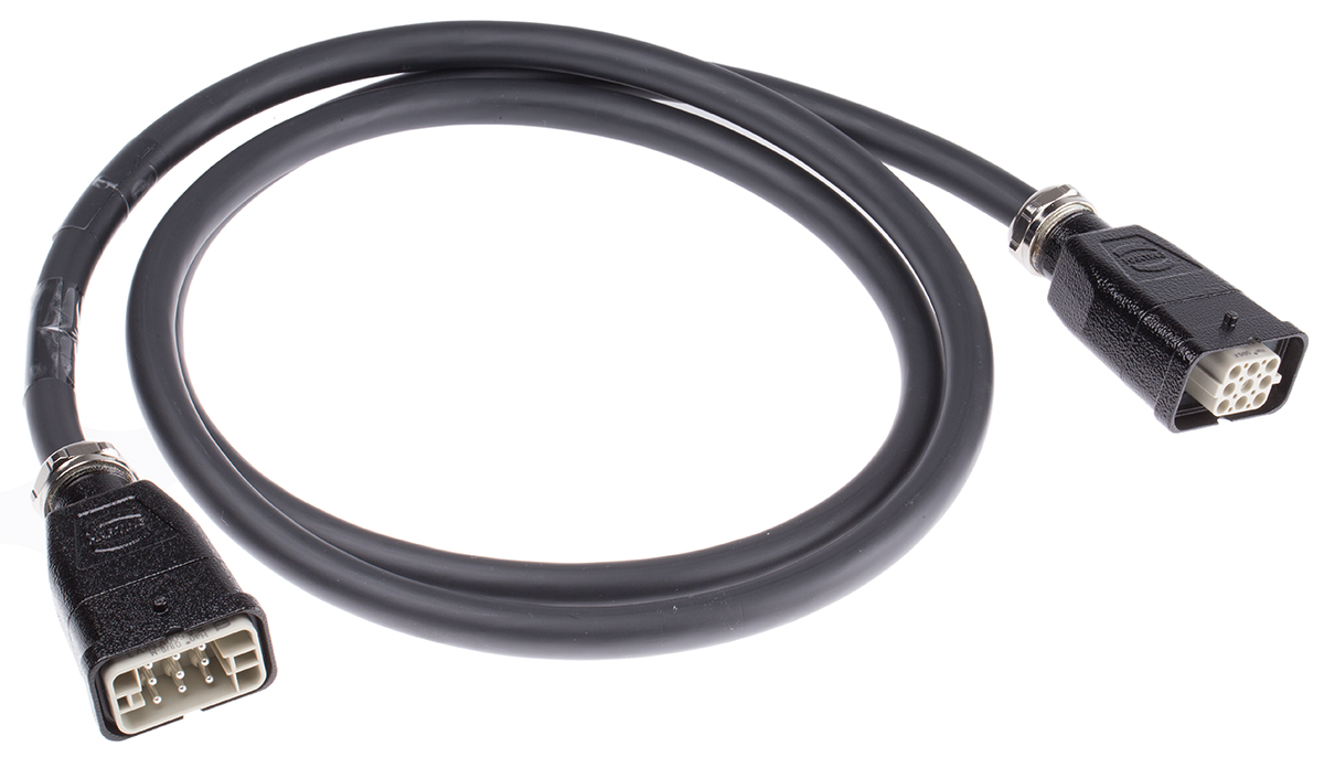 This is Han Q Series Cable Assembly Male to Female 8 Way 12A 300 V dc 600 V ac manufactured by Harting. The manufacturer part number is 20871453001200. The product has a current rating of 12a. Moreover, the product has a nominal 300 v, 600 v voltage rating. In addition, female to male is the available "Gender" of the product. It has straight body orientation. While the pole has 8p+pe, 8p+pe, 8p+pe format. It comes in 3 of rows. The product han q, is a highly preferred choice for users. The product contains 8 contacts. It comes in cable assembly configuration.
