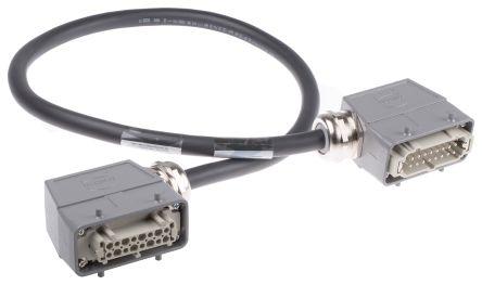 This is Han E Series Right Angle Cable Assembly Male to Female 16 Way 7A 600 V manufactured by Harting. The manufacturer part number is 20871469002100. The product has a current rating of 7a. Moreover, the product has a nominal 600 v voltage rating. In addition, male to female is the available "Gender" of the product. It has right angle body orientation. It comes in 2 of rows. The product han e, is a highly preferred choice for users. The product contains 16 contacts. It comes in cable assembly configuration.