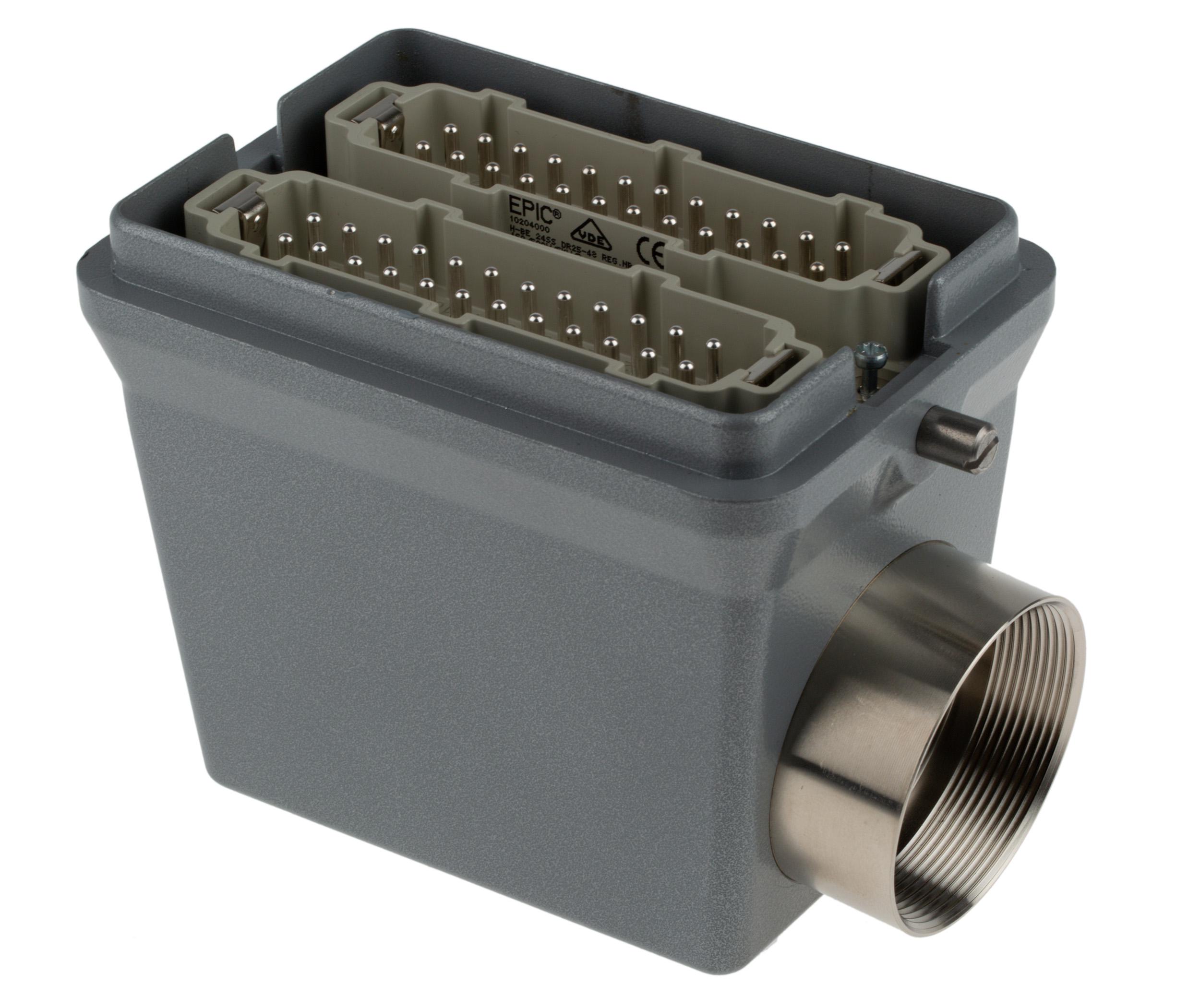 This is H-BE Series 48 Way Male 16A Plug Kit manufactured by Epic Contact. The manufacturer part number is 10160000+10196000+10204000+129. The product has a current rating of 16a. Moreover, the product has a nominal 440 v voltage rating. In addition, male is the available "Gender" of the product. It has side entry body orientation. While the pole has 48p+e format. It has a typical thread size of pg42. The product h-be, is a highly preferred choice for users. The product contains 48 contacts. It comes in plug kit configuration.