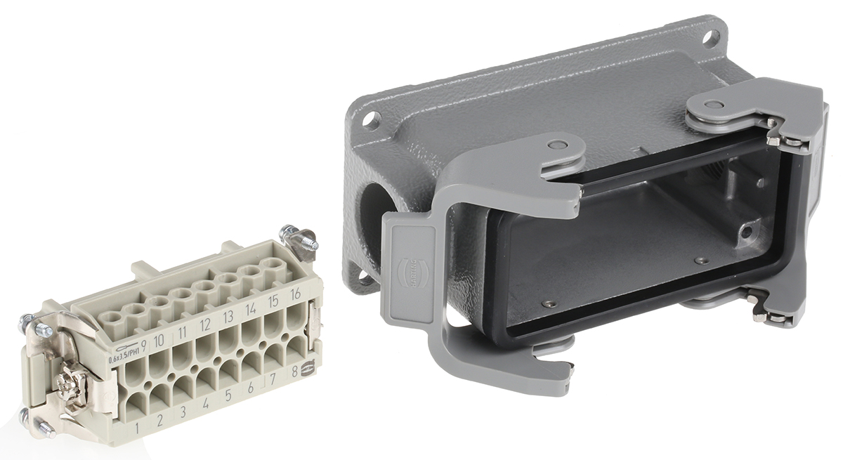 This is Han E Series 16 Way Female 16A Connector Kit includes Housing Insert manufactured by Harting. The manufacturer part number is 09330162701+19300161231. The product has a current rating of 16a. Moreover, the product has a nominal 500 v voltage rating. In addition, female is the available "Gender" of the product. Whereas, the 16 b is the manufacture's size code. While the pole has 16 + pe format. It has a typical thread size of m25. The product han e, is a highly preferred choice for users. The product contains 16 contacts. It comes in connector set configuration.