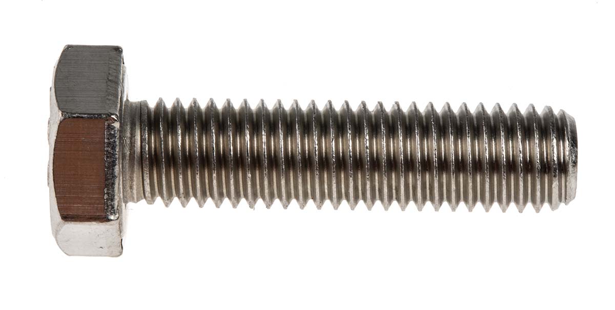 This is Plain Stainless Steel Hex M10 x 40mm Set Screw manufactured by RS Pro. The manufacturer part number is 190-383. It is available in metric package. The stainless steel is a a4 316. The product complies with all safety standards, such as din 933. The product is made from highly stable and reliable stainless steel. It has a typical thread size of m10. Its accurate length is 40mm. Furthermore, the pitch of the thread is 1.50mm.