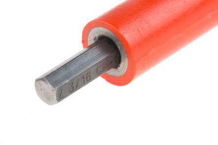 This is 3/16 in T Shape Long Arm Hex Key Insulated Chrome Vanadium Steel manufactured by RS Pro. The manufacturer part number is 911-1395. It is available in metric package. VDE/1000V Approval Options - yes. The product is made from highly stable and reliable chrome vanadium steel. It is a t product with unique specifications. Its hex key size is about 3/16in . Additionally, it has a long arm .