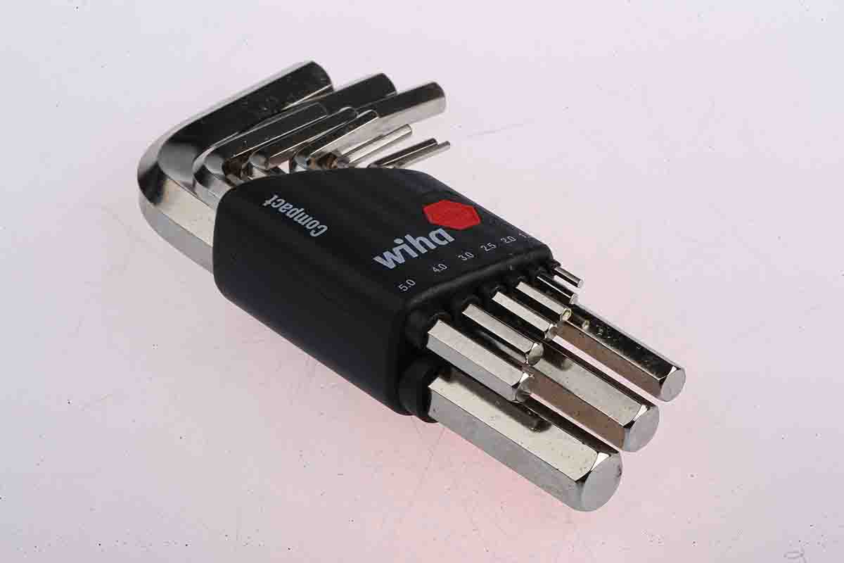 This is L Shape Short Arm Hex Key Set 9 pieces Chrome Vanadium Steel manufactured by Wiha Tools. The manufacturer part number is 01174. It is available in metric package. The product is made from highly stable and reliable chrome vanadium steel. Its hex key size is about 1.5 → 10mm . It is a l product with unique specifications. hex key set is a versatile product designed to provide user-defined applications. The built-in exquisite tip is a hexagon tip. Additionally, it has a short arm . The product consists of 9 pieces.