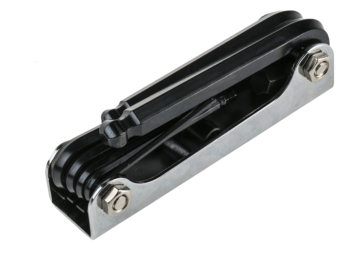 This is 7 piece Folding Hex Key Set Chrome Vanadium Steel manufactured by RS Pro. The manufacturer part number is 450-1046. It is available in imperial package. A quality product with a nice gunmetal finish. The product is made from highly stable and reliable chrome vanadium steel. The built-in exquisite tip is a ball end hexagon tip. It is a folding product with unique specifications. hex key set is a versatile product designed to provide user-defined applications. Its hex key size is about 3/32 → 5/16in . The product consists of 7 pieces.