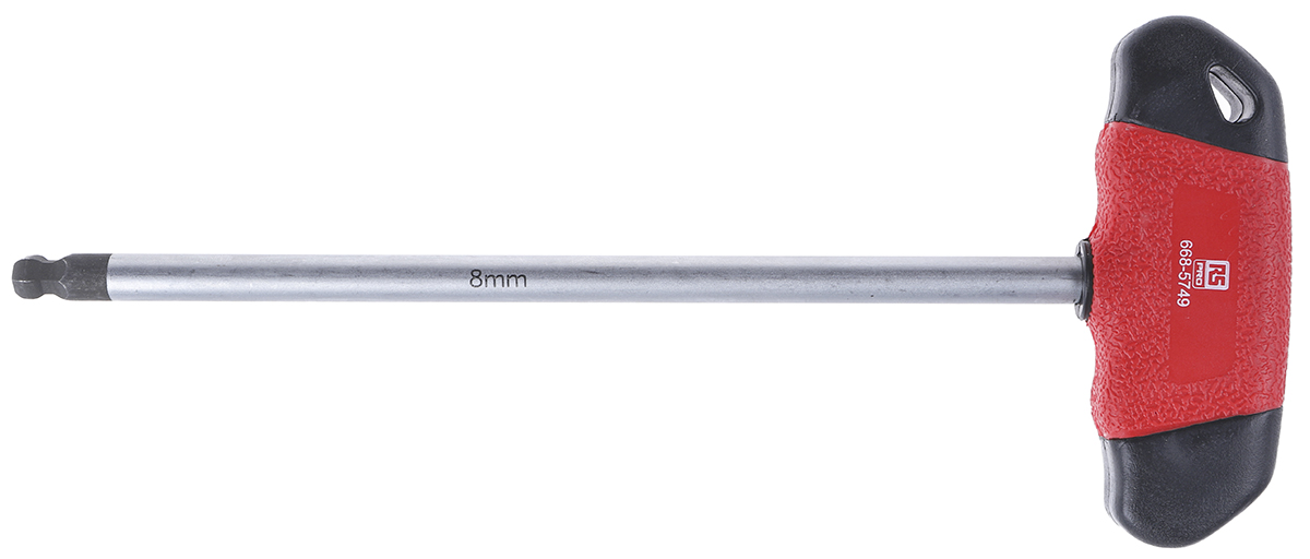 This is 8 mm T Shape Long Arm Hex Key Chrome Vanadium Molybdenum Steel manufactured by RS Pro. The manufacturer part number is 668-5749. It is available in metric package. The product is made from highly stable and reliable chrome vanadium molybdenum steel. Its hex key size is about 8mm . It is a t product with unique specifications. hex key is a versatile product designed to provide user-defined applications. The built-in exquisite tip is a ball end hexagon; hexagon tip. Additionally, it has a long arm . The product consists of 1 pieces.