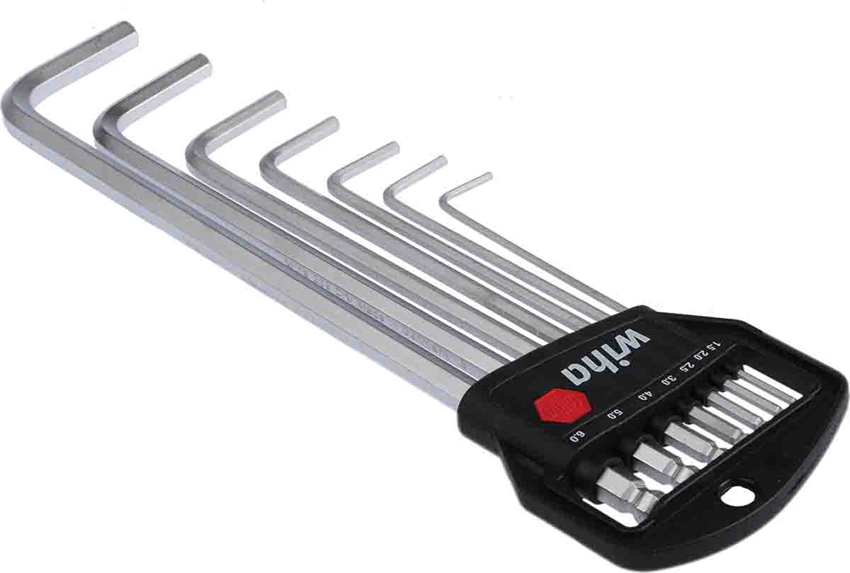This is L Shape Hex Key Set 7 pieces Chrome Vanadium Steel manufactured by Wiha Tools. The manufacturer part number is 01416. It is available in metric package. The product is made from highly stable and reliable chrome vanadium steel. Its hex key size is about 1.5 → 6mm . It is a l product with unique specifications. hex key set is a versatile product designed to provide user-defined applications. The built-in exquisite tip is a ball end hexagon tip. The product consists of 7 pieces.