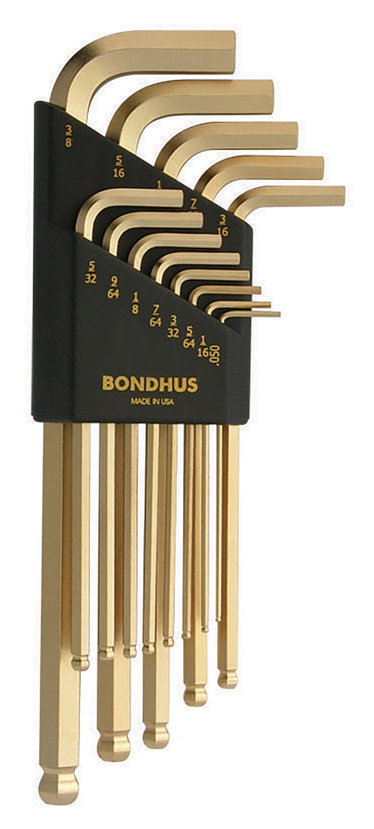 This is Ball End Gold Guard manufactured by Bondhus. The manufacturer part number is BLX13G. It is available in imperial package. The product is made from highly stable and reliable steel. Its hex key size is about 0.05 → 7/32" . It is a l product with unique specifications. hex key set is a versatile product designed to provide user-defined applications. The built-in exquisite tip is a ball end hexagon tip. Additionally, it has a long arm . The product consists of 13 pieces.