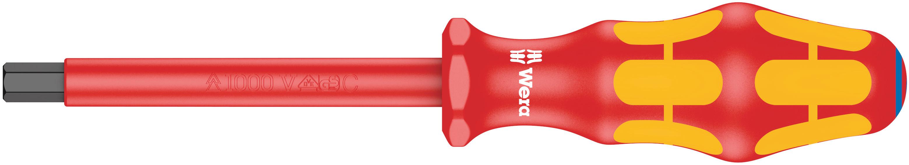 This is 8mm Screwdriver Hex Driver manufactured by Wera. The manufacturer part number is 004675. It is available in metric package. VDE/1000V Approval Options - yes. It has a hex screwdriver type hex key . It is a straight product with unique specifications. Its hex key size is about 8mm . Additionally, it has a long arm . The product consists of 1 pieces.