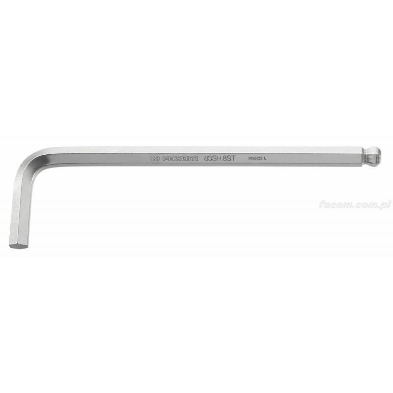 This is Hex Key L Shape 10mm manufactured by Facom. The manufacturer part number is 83SH.10ST. It is available in metric package. It has a hexagon type hex key . The product is made from highly stable and reliable stainless steel. It is a l product with unique specifications. Its hex key size is about 10mm . Additionally, it has a long arm . The product consists of 1 pieces.