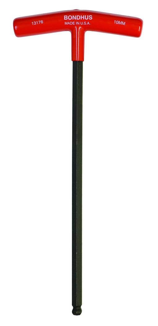 This is Hex Key T-handle 10mm manufactured by Bondhus. The manufacturer part number is 13176. It is available in metric package. Its hex key size is about 10mm . It is a t product with unique specifications. hex key is a versatile product designed to provide user-defined applications. The built-in exquisite tip is a ball end hexagon tip. The product consists of 1 pieces.