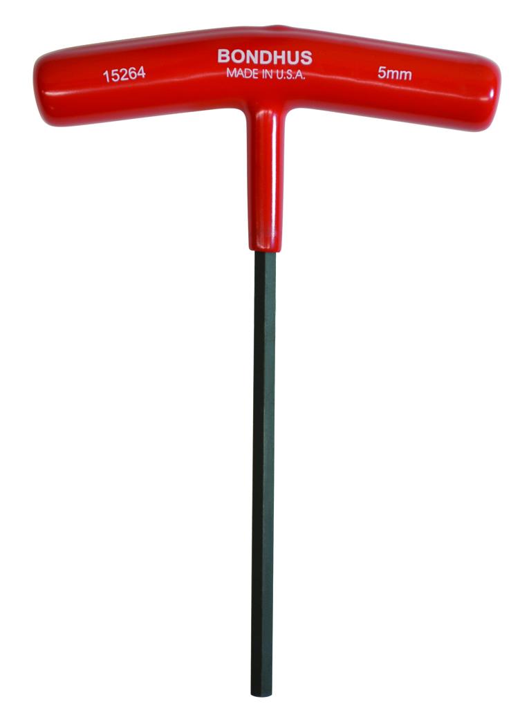 This is Hex Key T-handle 5mm manufactured by Bondhus. The manufacturer part number is 15264. It is available in metric package. Its hex key size is about 5mm . It is a t product with unique specifications. hex key is a versatile product designed to provide user-defined applications. The built-in exquisite tip is a hexagon tip. The product consists of 1 pieces.