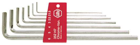 This is 7 piece L Shape Metric Hex Key Set 1.5 → 6mm manufactured by Wiha. The manufacturer part number is 01220. It is available in metric package. The product is made from highly stable and reliable chrome vanadium steel. Its hex key size is about 1.5 → 6mm . It is a l product with unique specifications. hex key set is a versatile product designed to provide user-defined applications. The built-in exquisite tip is a hexagon tip. The product consists of 7 pieces.