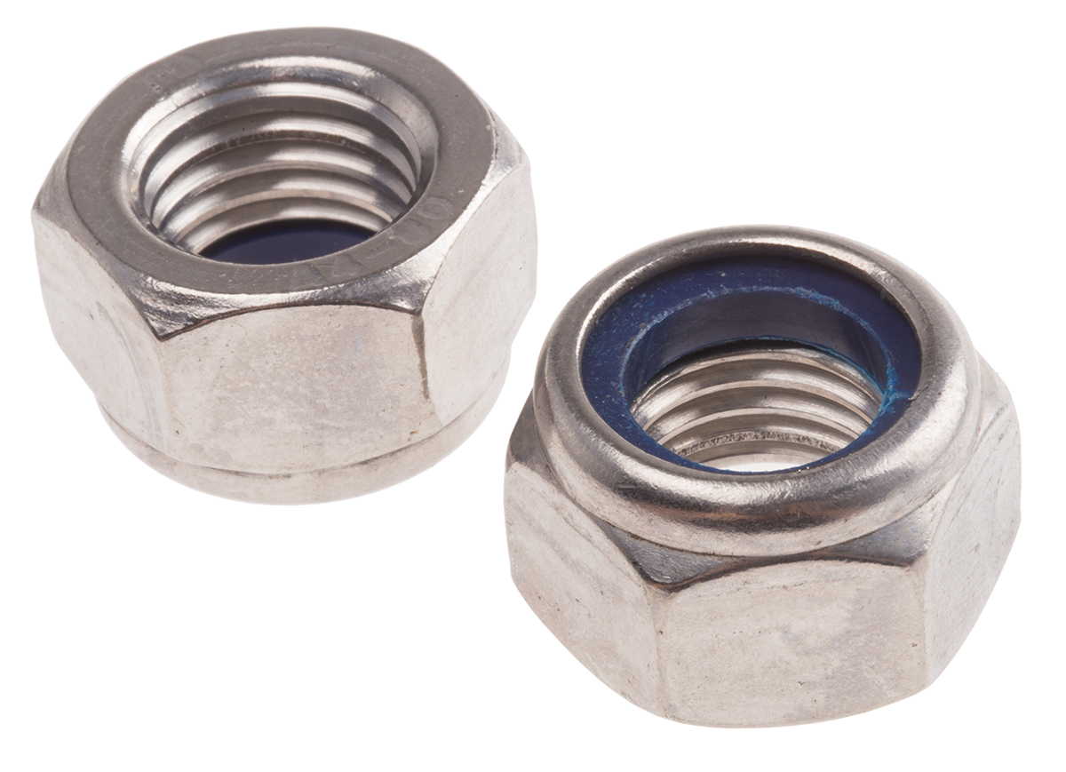 This is M16 Plain Nylon Insert Lock Nut manufactured by RS Pro. The manufacturer part number is 797-6377. It is available in metric package. The stainless steel is a a4 316. The product complies with all safety standards, such as din 985. Moreover, it has 10.5mm of overall height. The product is made from highly stable and reliable stainless steel. It has a typical thread size of m16. Furthermore, the product is 24mm wide. It has a nylon insert self locking type t type nut . It comes in nylon insert configuration.