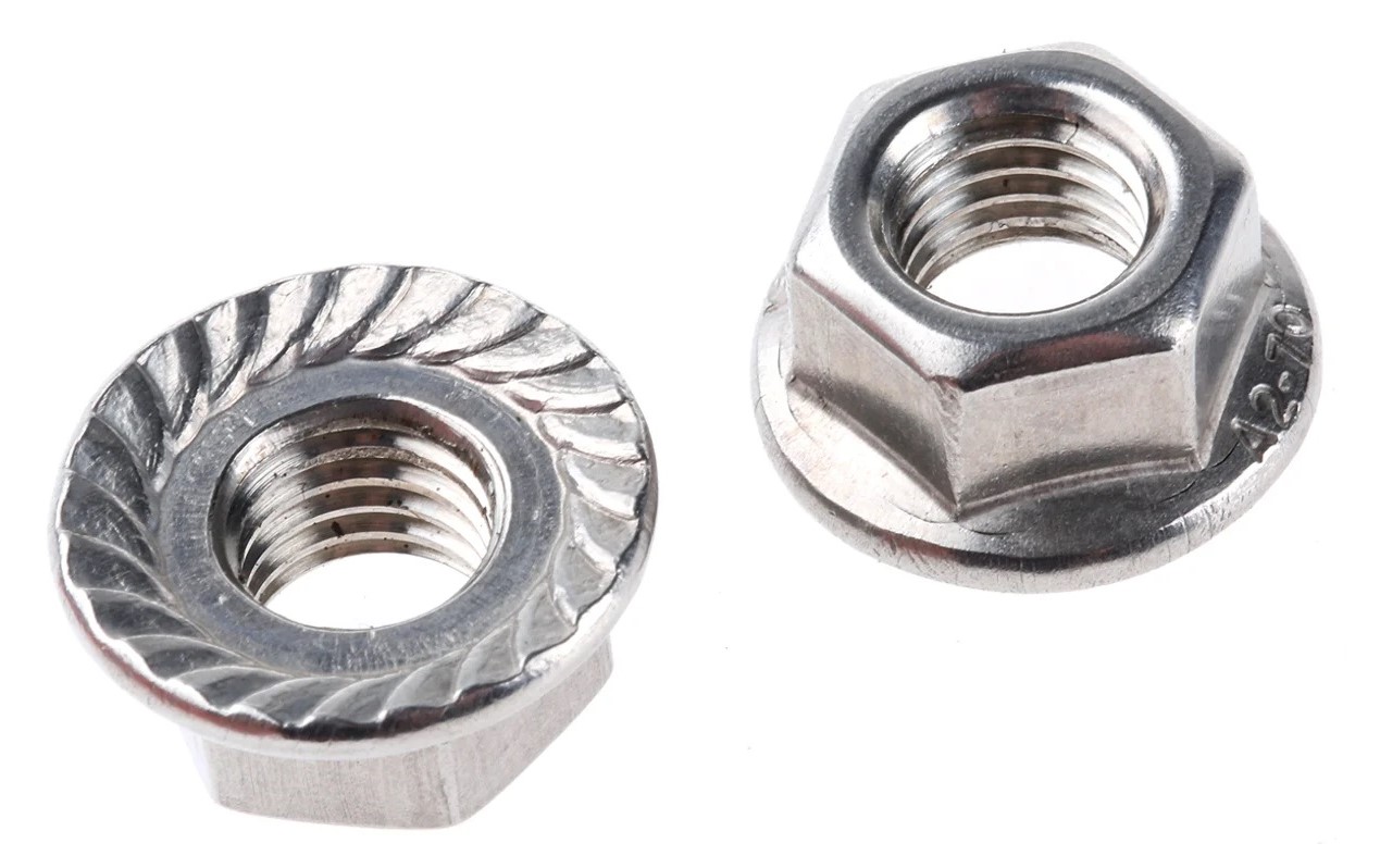 This is Plain Stainless Steel Flanged Hex Nut DIN 6923 M10 manufactured by RS PRO. The manufacturer part number is 264-6434. It is available in metric package. The flange diameter is 21.8mm. The product complies with all safety standards, such as din 6923. Moreover, it has 10mm of overall height. The product is made from highly stable and reliable stainless steel. It has a typical thread size of m10. Furthermore, the product is 15mm wide. The stainless steel is a a2 304. It has a flanged serrated type nut . It comes in serrated flanged nut configuration.