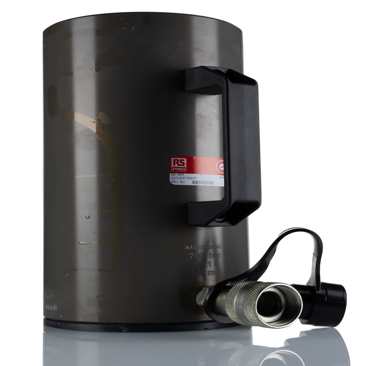 This is Single Portable General Purpose Hydraulic Cylinder 50t 150mm stroke manufactured by RS PRO. The manufacturer part number is 235-8219. It allows up to 1063cm³ oil capacity. The module has the capacity of 50t. It features 700bar maximum operating pressure. The typical product's weight is 11kg. It has a cylinder effective area of 71cm² . It has about 430mm extended height . The stroke is 150mm. It has about 280mm closed height . The product has 135mm external diameter. It has a single acting feature .