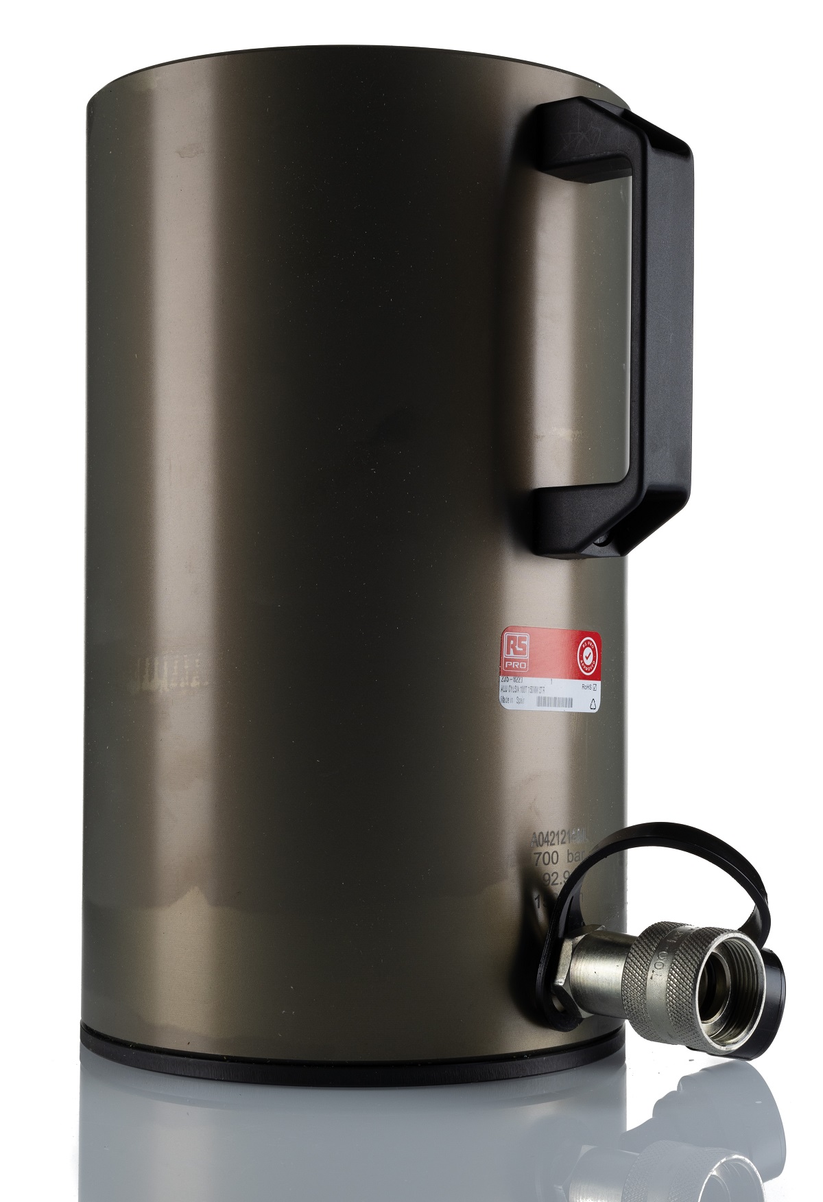 This is Single Portable General Purpose Hydraulic Cylinder 100t 150mm stroke manufactured by RS PRO. The manufacturer part number is 235-8221. It allows up to 1989cm³ oil capacity. The module has the capacity of 100t. It features 700bar maximum operating pressure. The typical product's weight is 22kg. It has a cylinder effective area of 133cm² . It has about 460mm extended height . The stroke is 150mm. It has about 310mm closed height . The product has 180mm external diameter. It has a single acting feature .