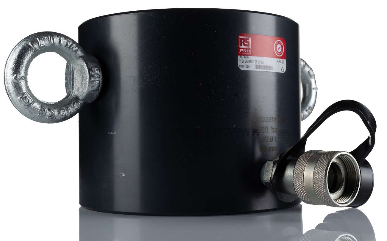 This is Single Portable Low Height Hydraulic Cylinder 100t 60mm stroke manufactured by RS PRO. The manufacturer part number is 235-8248. It allows up to 796cm³ oil capacity. The module has the capacity of 100t. It features 700bar maximum operating pressure. The typical product's weight is 25kg. It has a cylinder effective area of 133cm² . It has about 201mm extended height . The stroke is 60mm. It has about 141mm closed height . The product has 175mm external diameter. It has a single acting feature .