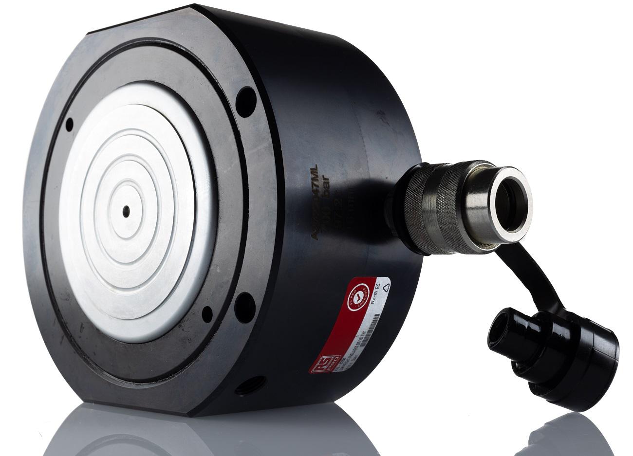 This is Single Portable Low Height Hydraulic Cylinder 100t 16mm stroke manufactured by RS PRO. The manufacturer part number is 235-8258. It allows up to 223cm³ oil capacity. The module has the capacity of 100t. It features 700bar maximum operating pressure. The typical product's weight is 15kg. It has a cylinder effective area of 139cm² . It has about 103mm extended height . The stroke is 16mm. It has about 87mm closed height . It has a single acting feature .