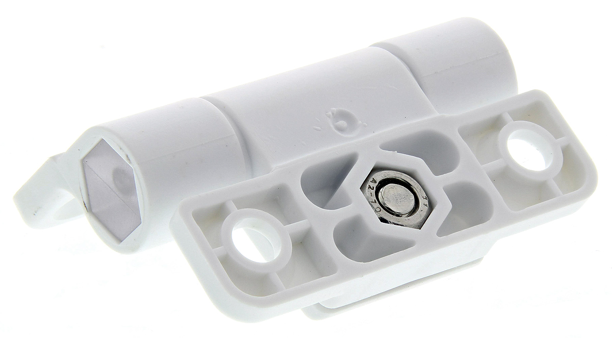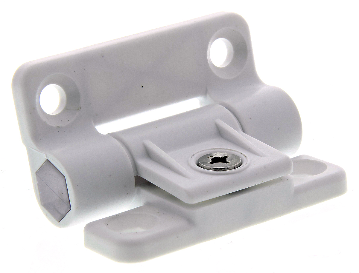 This is White Acetal Adjustable Hinge with a Fixed pin Screw 65mm x 57mm x 5.2mm manufactured by RS Pro. The manufacturer part number is 772-9641. Its closing type is free swinging . It is fixed using screw method . It has a friction hinge type hinge . It is 5.2mm thick. Furthermore, the product is 57mm wide. Its accurate length is 65mm.