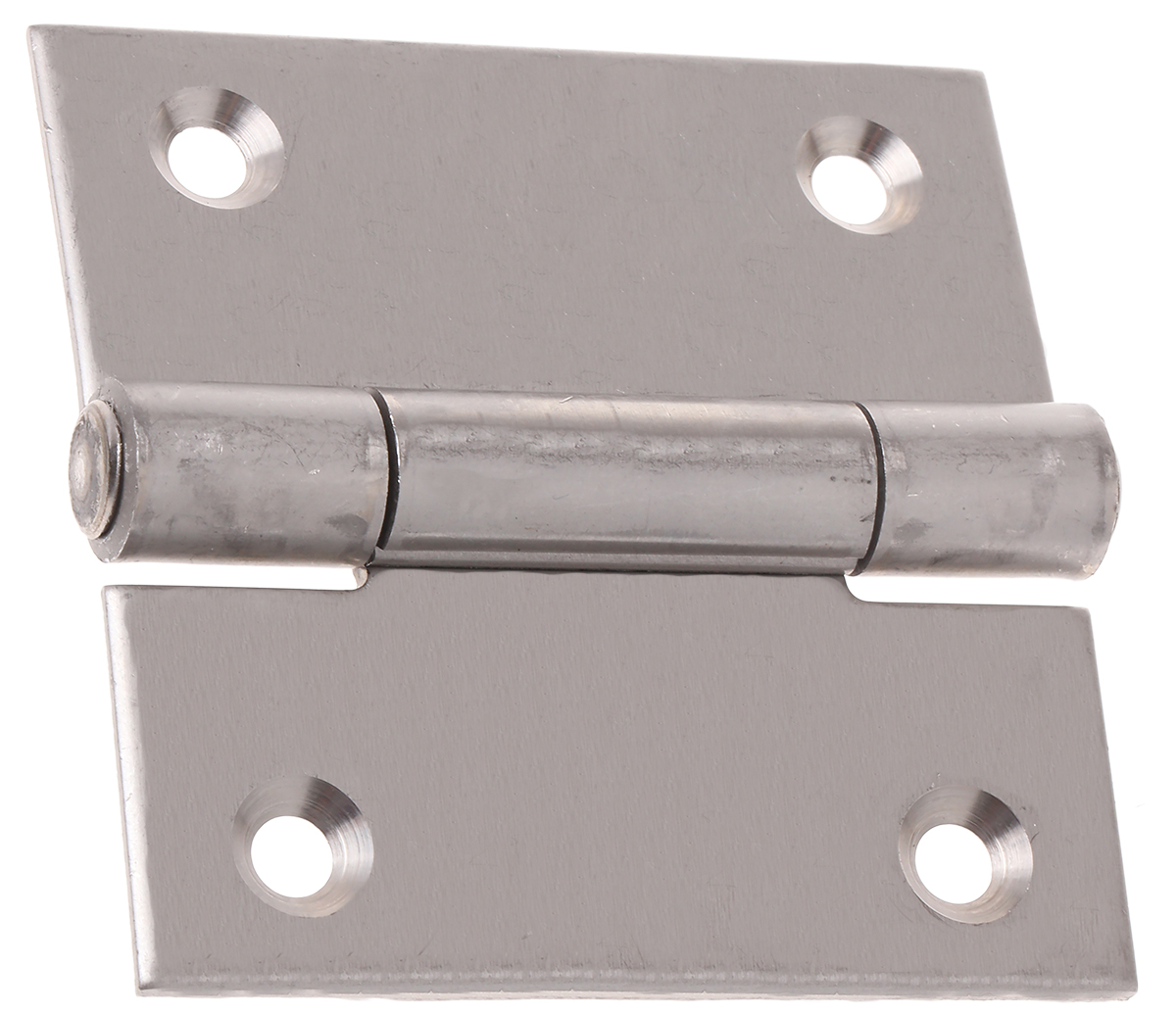 This is Raw Stainless Steel Square Hinge with a Riveted pin Screw 60mm x 60mm x 2mm manufactured by Pinet. The manufacturer part number is RS_448-5247. Its closing type is free swinging . It is fixed using screw method . The product is made from highly stable and reliable stainless steel. It has a butt hinge type hinge . It is 2mm thick. Furthermore, the product is 60mm wide. Its accurate length is 60mm.