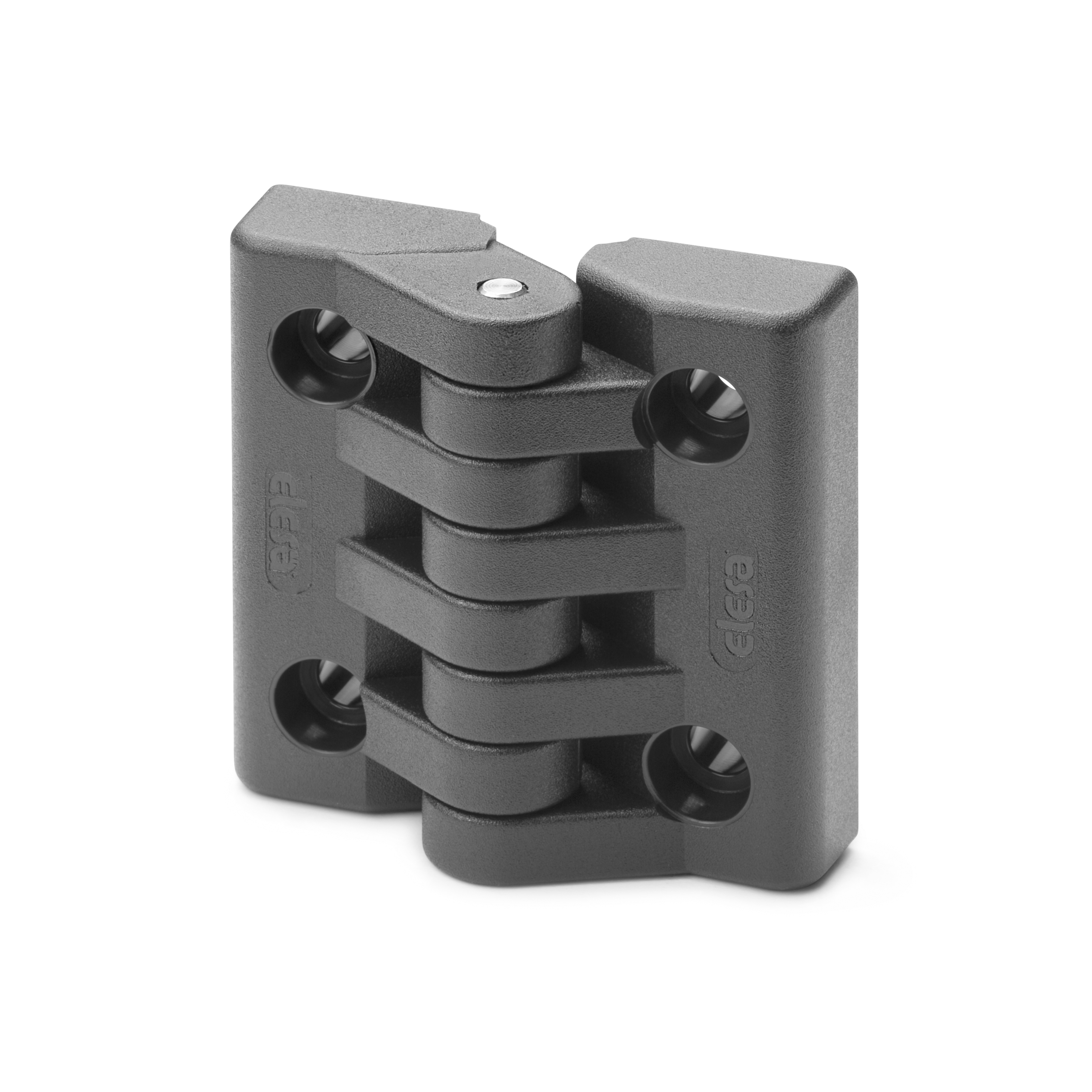 This is PA Butt Hinge with a Fixed Pin Screw Fixing 49.5mm x 48mm x 19mm manufactured by Elesa. The manufacturer part number is 422132. Its closing type is free swinging . It is fixed using screw method . The product is made from highly stable and reliable pa. It has a butt hinge type hinge . It is 19mm thick. Furthermore, the product is 48mm wide. Its accurate length is 49.5mm. It comes with a/an fixed style pin .