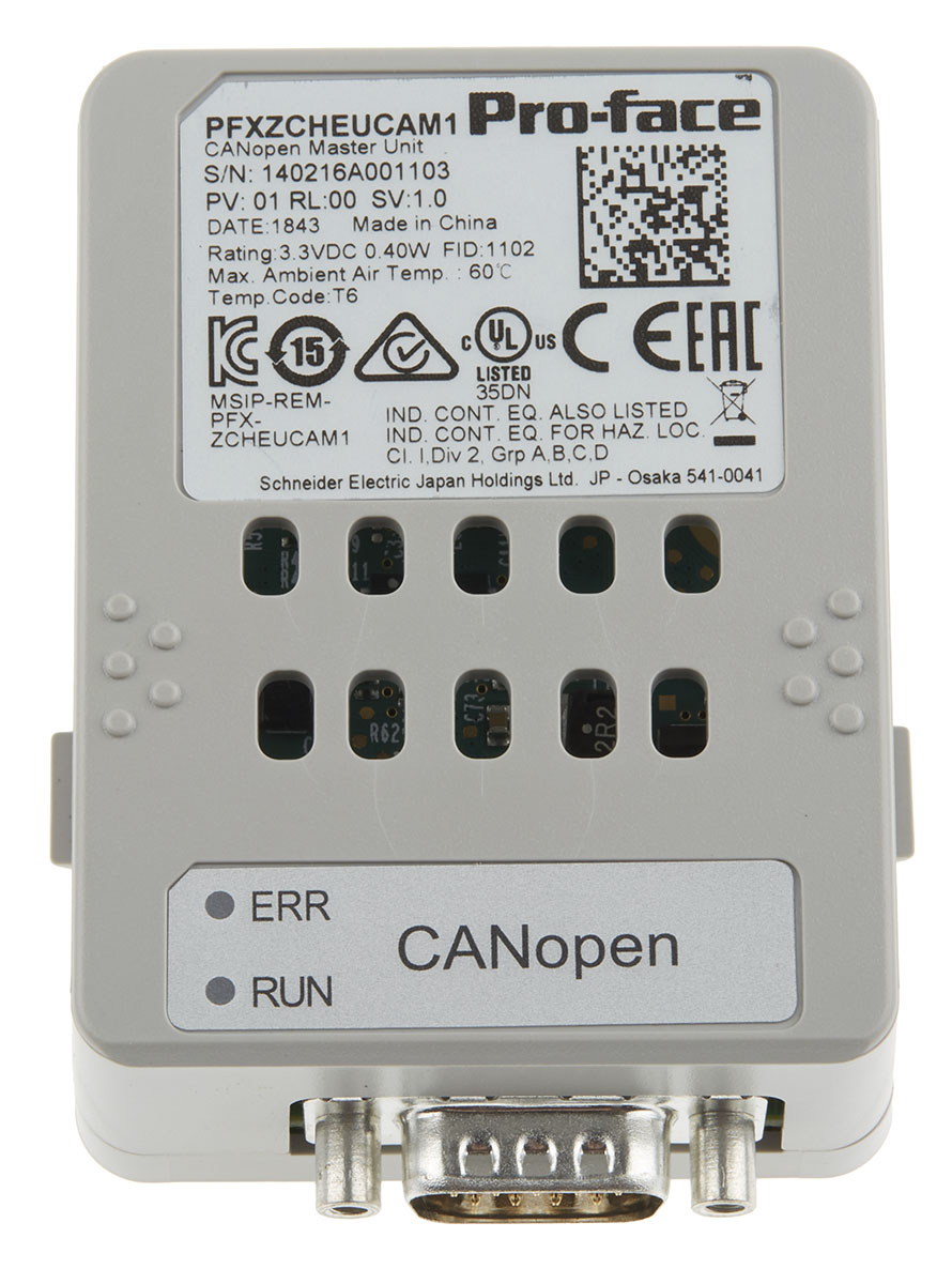 This is CANopen Master unit manufactured by Pro-face. The manufacturer part number is PFXZCHEUCAM1. The product is certified with no hazardous area certification. It is tailored for use with sp5000 HMI . hmi enclosure is a versatile product designed to provide user-defined applications.