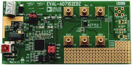 This is Capacitance to Digital Converter Evaluation Board for AD7152 manufactured by Analog Devices. The manufacturer part number is EVAL-AD7152EBZ. It has a capacitive touch user interface . Featured Device ad7152. The kit is classified as evaluation board.