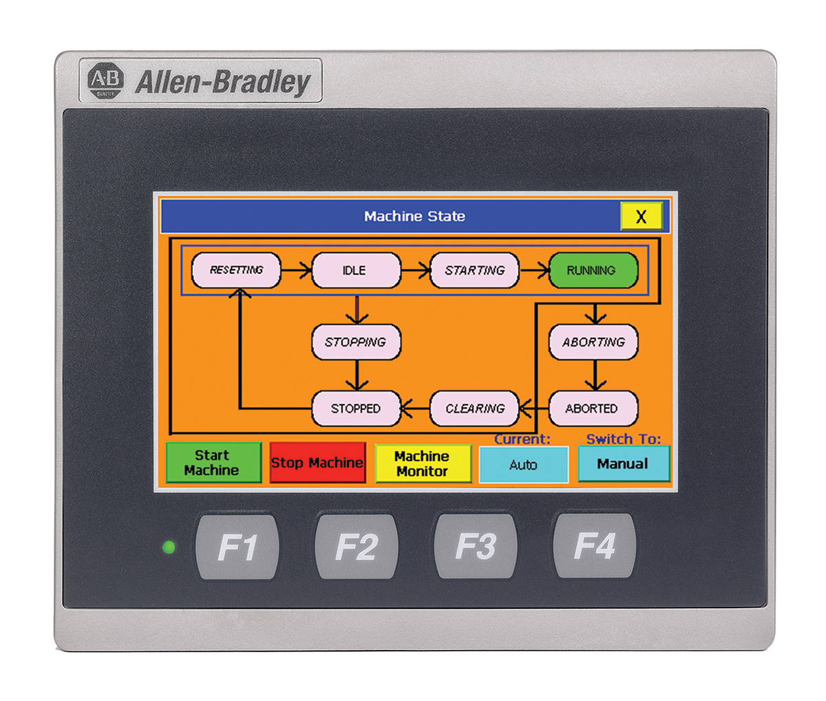 PanelView 800 - Terminal with Touchscreen 2711R Series PanelView 800 Graphic Terminals are panel-mount display devices offering keypad or touch screen options for operator input. These graphic terminals are available in 4 to 10 inch display sizes. They include 800 MHz CPU processors, high-resolution displays with LED backlight supporting 65K colours, and high flash memory and dynamic memory. The built-in Ethernet and serial communication ports support a variety of networks. PanelView 800 Graphic Terminals HMI with TFT resistive touch screen High-resolution display with LED backlight, 65K colors Different sizes available: - 4 inch touchscreen and function keys, stock no. 893-7786 - 7 inch touchscreen, stock no. 893-7789 - 10 inch touchscreen, stock no. 893-7783 Multiple languages available Support landscape and portrait applications Ethernet, USB, RS232, RS422 and RS485 interface MicroSD card slot Multi-communication protocols Alarming and recipe function Typical applications: Adhesive labelers Air handling units Material handling Stretch wrap machines