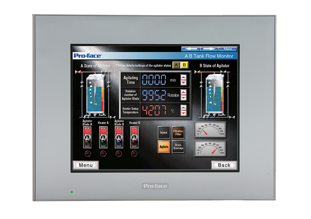 This is GP4100 Series Touch Screen HMI 10.4 in TFT LCD 640 x 480pixels manufactured by Pro-face. The manufacturer part number is PFXGP4501TADW. Better World Verification Options - green premium. It features a remarkable tft lcd display. This product features 6 number of ports. It has an attractive colour colour display . The given dimensions of the product include 315 x 56 x 241 mm. The product has a gp4000 manufacturer series. It is IP rated with ip65f. It supports a/an ethernet, rs422c, rs485, sd card, usb 2.0 (mini-b), usb 2.0 (type a) type port . Its accurate length is 315mm. The product is designed with a standard 640 x 480 display resolution . Furthermore, the product is 56mm wide. The product comes in 241mm depth. Is it a better world product? yes. It has a backlighting feature yes . Whereas, the minimum operating temperature of the product is 0°c. It is designed with 16 mb onboard memory . The product has an assigned pfxgp4501tadw manufacturer part number. It has a maximum operating temperature of +50°c. It is tailored with a standard 10.4 in size display . Features 24 v dc supply voltage.