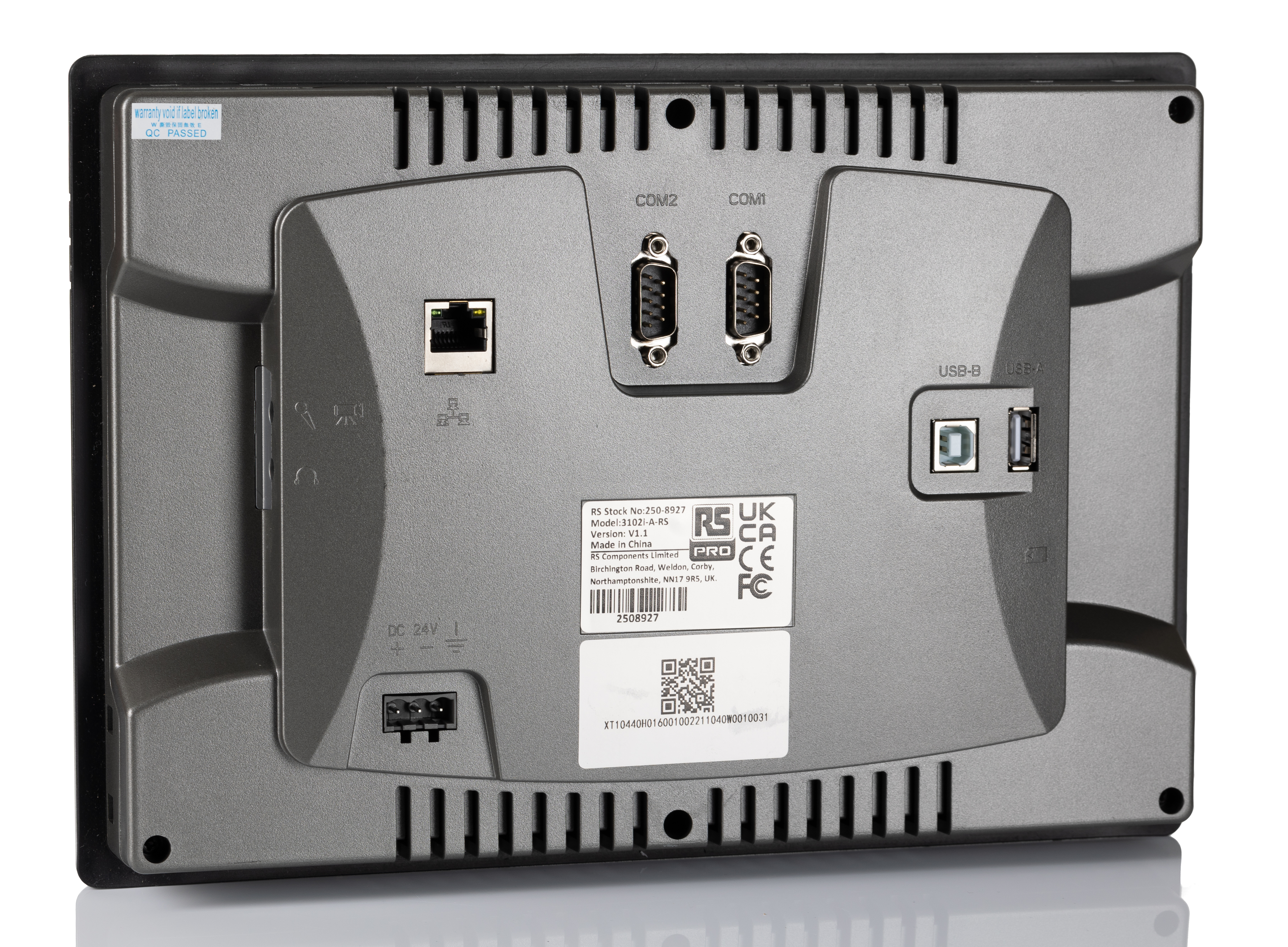 This is Touch-Screen HMI Display - 10.2 in LCD TFT Display 1024 X 600pixels manufactured by RS PRO. The manufacturer part number is 250-8927. It features a remarkable tft lcd display. This product features 7 number of ports. It has an attractive colour colour display . The given dimensions of the product include 272 x 190 x 41.3mm. It is IP rated with ip65. It supports a/an com1: rs232/422/rs485, com2: rs232, rs485, com3: rs485, usb, ethernet, canopen, sd card slot type port . Moreover, it has about 528mhz processor speed . Its accurate length is 272mm. The product is designed with a standard 1024 x 600 display resolution . Furthermore, the product is 272mm wide. The product comes in 41.5mm depth. The product has an assigned pi3102i-a manufacturer part number. It has a backlighting feature yes . Whereas, the minimum operating temperature of the product is -10°c. A bespoke product is canopen, com 1 serial, com 2 serial, com 3 serial, ethernet, sd card, usb interface. It is designed with 128m flash, 128m ddram onboard memory . It contains a/an arm cortex type processor . It has a maximum operating temperature of 55°c. It is tailored with a standard 10.2 in size display . Features 12 → 28 v dc supply voltage.
