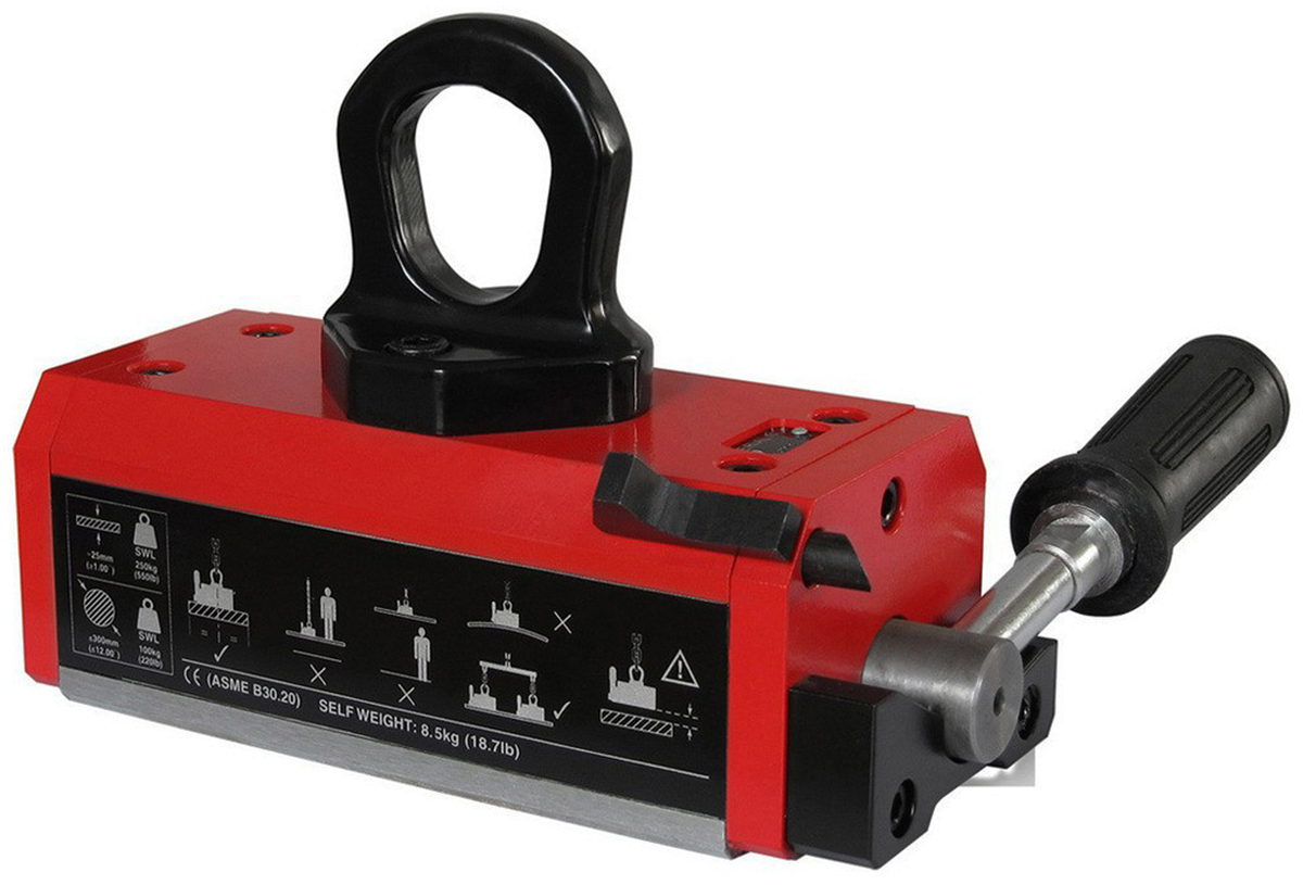 This is Manual 100 (Round) kg 250 (Flat) kg Lifting Magnet RS manufactured by Eclipse. The manufacturer part number is LM0250. The typical product's weight is 8.5kg. The product ultralift lm, is a highly preferred choice for users. It has about 250kg pull force . In addition, the height is 150mm. Furthermore, the product is 90mm wide. Its accurate length is 205mm.