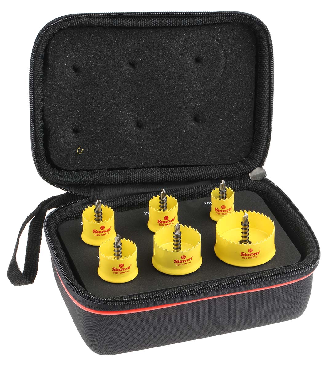 This is Metal 16 → 40 mm 6 piece Hole Saw Set manufactured by Starrett. The manufacturer part number is KCS06001. It has a/an hole saw set type drill bit . Its diameter is 16 → 40mm. The product is made from highly stable and reliable metal. It includes an arbor yes . The product consists of 6 pieces.