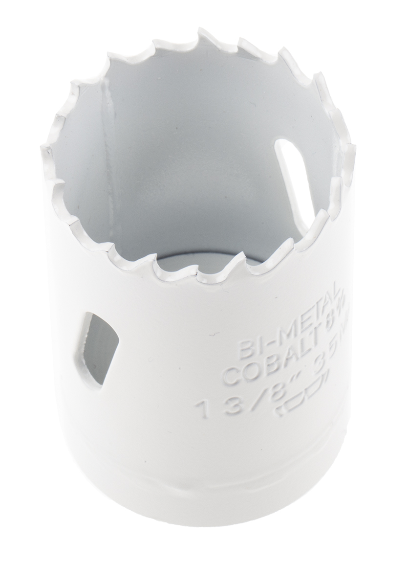 This is HSS 35mm Hole Saw Bi-Metal manufactured by RS Pro. The manufacturer part number is 174-9051. Its diameter is 35mm. It includes an arbor no . The product is made from highly stable and reliable cobalt steel. It has a/an hole saw type drill bit . It comes in hole saw configuration. Additionally, it has about 32mm cut depth . The product consists of 1 pieces.