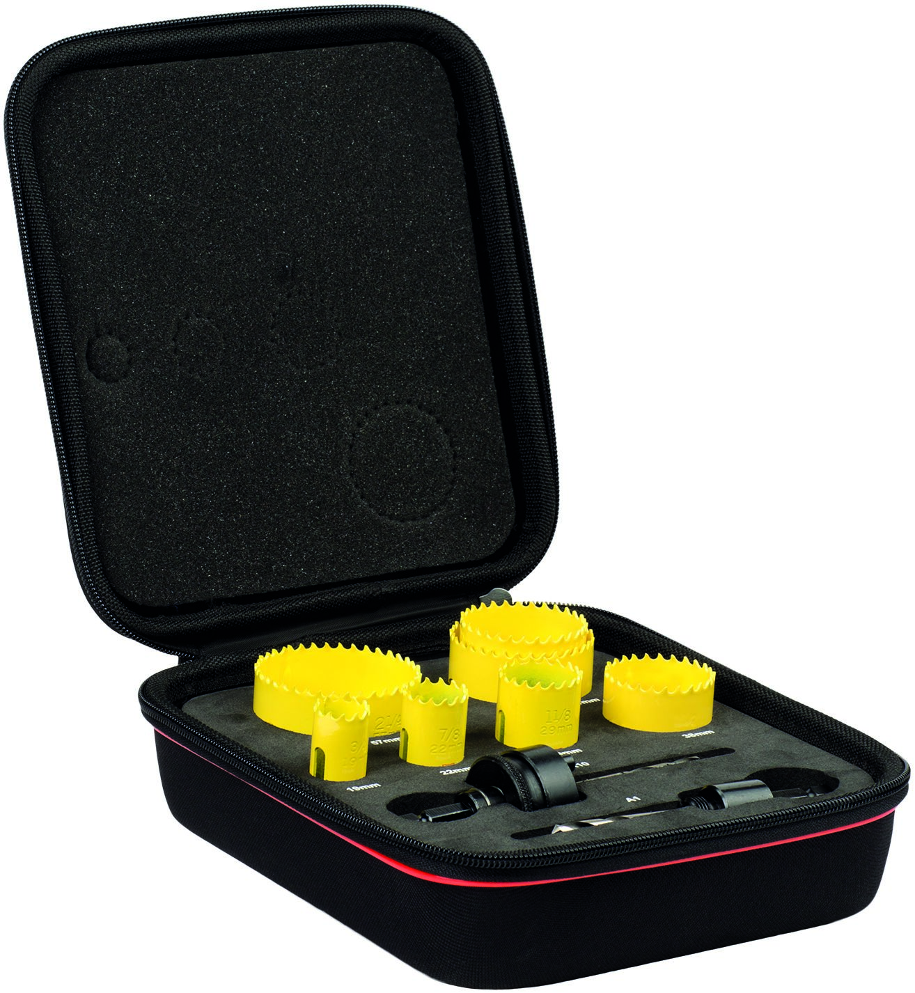 This is Bi-material 19 mm 22 mm 29 mm 38 mm 44 mm 51 mm 57 mm Hole Saw Set manufactured by Starrett. The manufacturer part number is KFC07021. It has a/an hole saw set type drill bit . Its diameter is 19 mm, 22 mm, 29 mm, 38 mm, 44 mm, 51 mm, 57 mm. The product is made from highly stable and reliable bi-material. It includes an arbor yes . Additionally, it has about 41mm cut depth .
