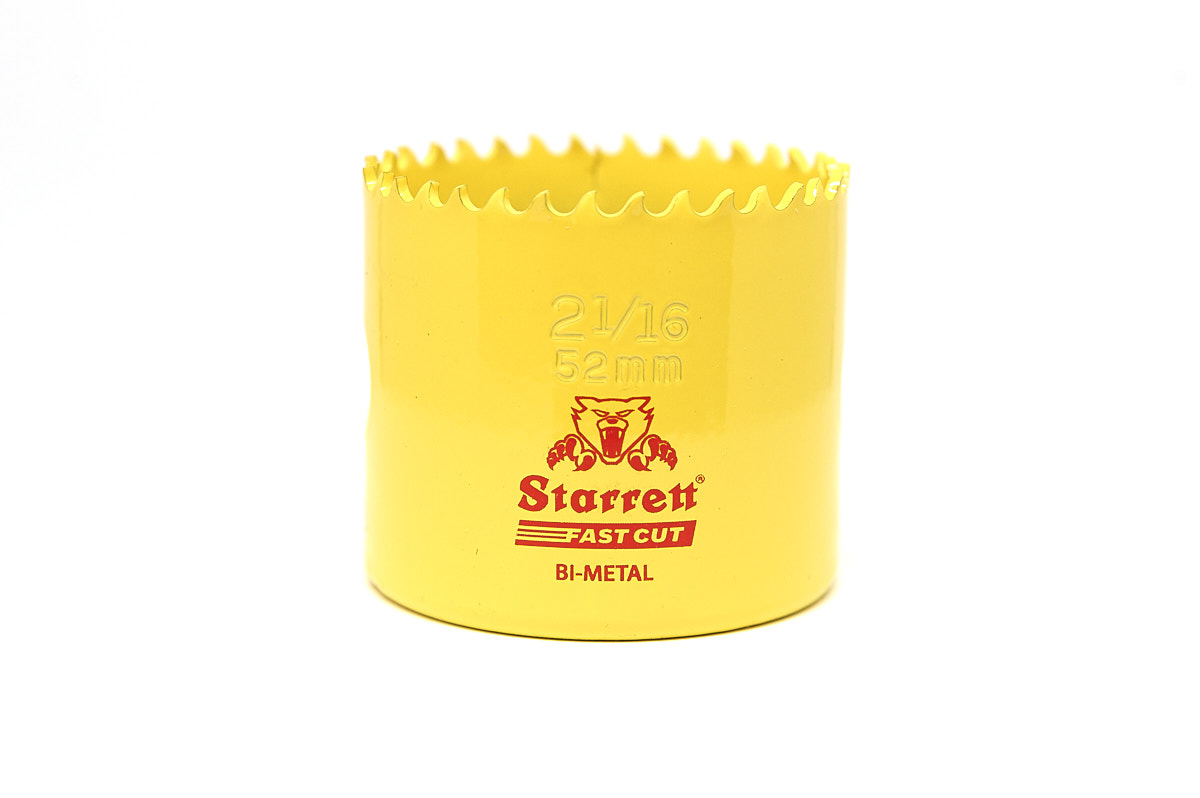 This is HSS 52mm Hole Saw manufactured by Starrett. The manufacturer part number is FCH0216-G. Its diameter is 52mm. The product is made from highly stable and reliable hss. It has a/an hole saw type drill bit . It includes an arbor no . Additionally, it has about 38mm cut depth . The product consists of 1 pieces.