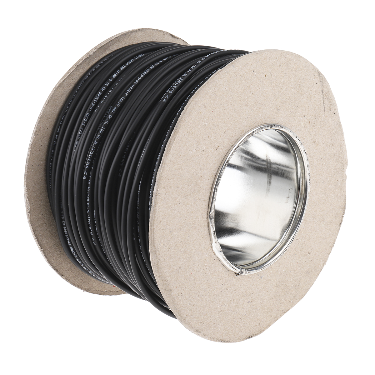 This is Black 100m Polyolefin Cross-linked EI5 Type EI 5 to EN 50363-5 Equipment Wire 2.5 mm² CSA 450/750 V 13 AWG manufactured by RS Pro. The manufacturer part number is 836-0818. Features 13 awg - American Wire Gauge. The product complies with all safety standards, such as euroclass eca. Moreover, this cable has a round shape. The conductor is made from copper material. It has a maximum operating temperature of +90°c. Moreover, the product has a nominal 750 v voltage rating. It has h07z-k European harmonized code . The sheath has an adorable black colour. The insulated wall has 0.8mm thick. Its accurate length is 100m. It has a robust polyolefin cross-linked ei5, type ei 5 to en 50363-5 insulation material. Whereas, the minimum operating temperature of the product is -5°c. Its outer diameter is 4.3mm. The product has 2.5 mm² cross section area.