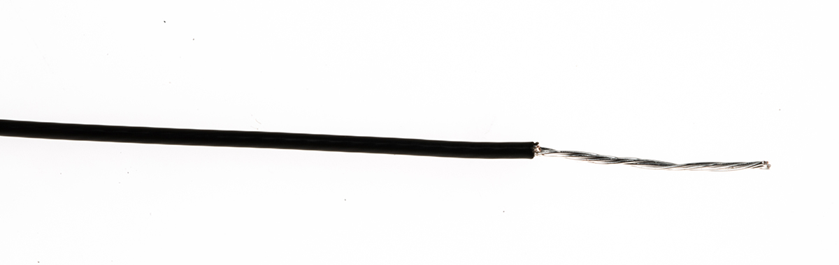 This is 0.124 mm² PTFE Equipment Wire 100m 300 V Silver Plated Copper 7 Strands BS 3G 210:1996 manufactured by RS Pro. The manufacturer part number is 841-7181. Features 26 awg - American Wire Gauge. Additionally, it contains 7 strands. The product complies with all safety standards, such as bs 3g 210:1996. Moreover, the product has a nominal 300 v voltage rating. The conductor is made from silver plated copper material. It has a maximum operating temperature of 200°c. The wire has a bs3g210 style. The core strands are 7/0.15 mm. The sheath has an adorable black colour. The insulated wall has 0.15mm thick. Its accurate length is 100m. A bespoke product is highly resistant to fuels, gasoline, hydraulic fluid, lubricants, oils. It has a robust ptfe insulation material. Whereas, the minimum operating temperature of the product is -75°c. Its outer diameter is 0.8mm. The strand size includes 0.15mm. The product has 0.12mm² cross section area.