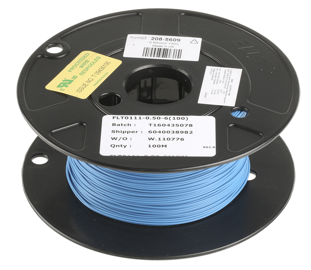 This is FlexLite Series Blue 100m Polyolefin Equipment Wire 0.5 mm² CSA manufactured by TE Connectivity. The manufacturer part number is FLT0111-0.50-6. Features 20 awg - American Wire Gauge. Additionally, it contains 19 strands. The product complies with all safety standards, such as ul listed. Moreover, this cable has a single core shape. The conductor is made from tinned copper material. The product flexlite, is a highly preferred choice for users. Moreover, the product has a nominal 600 v voltage rating. The product has a flame retardant, low smoke density, self-extinguishing fire behaviour. The core strands are 19/0.19 mm. The sheath has an adorable blue colour. Its accurate length is 100m. It has a robust polyolefin insulation material. Whereas, the minimum operating temperature of the product is -65°c. It has a maximum operating temperature of +150°c. Its outer diameter is 1.31mm. The strand size includes 0.19 mm. The product has 0.5 mm² cross section area.