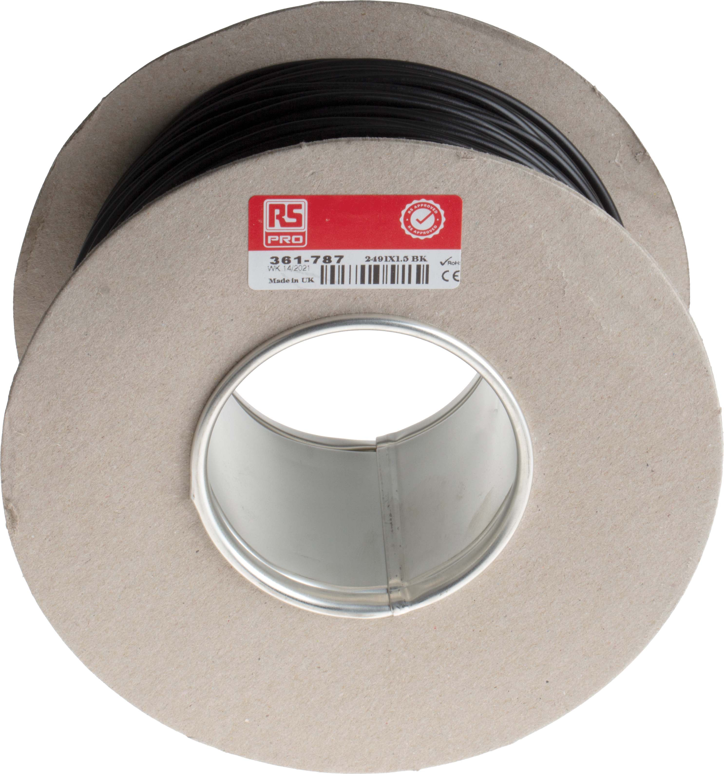 This is Black 100m PVC 2491X Equipment Wire 1.5 mm² CSA 750 V 15 AWG manufactured by RS Pro. The manufacturer part number is 361-787. Features 15 awg - American Wire Gauge. Its harmonised code is h07v-k . Whereas the outer sheath is manufactured from pvc material. Its outer diameter is 3.4mm. Additionally, it contains 30 strands. The product complies with all safety standards, such as bs 6004, bs en 50525-2-31, rohs compliant. Moreover, this cable has a single core shape. The core strands are 30/0.25 mm. The insulated wall has 0.7mm thick. It has a maximum operating temperature of +70°c. The wire has a 2491x style. The product has 1.5mm² cross section area. Moreover, the product has a nominal 750 v voltage rating. The item is shielded with a unshielded. Its accurate length is 100m. The conductor is made from annealed copper material. The product 2491x, is a highly preferred choice for users. The strand size includes 0.25mm. The sheath has an adorable black colour. It has a robust pvc insulation material. Whereas, the minimum operating temperature of the product is -15°c. It has h07v-k European harmonized code .