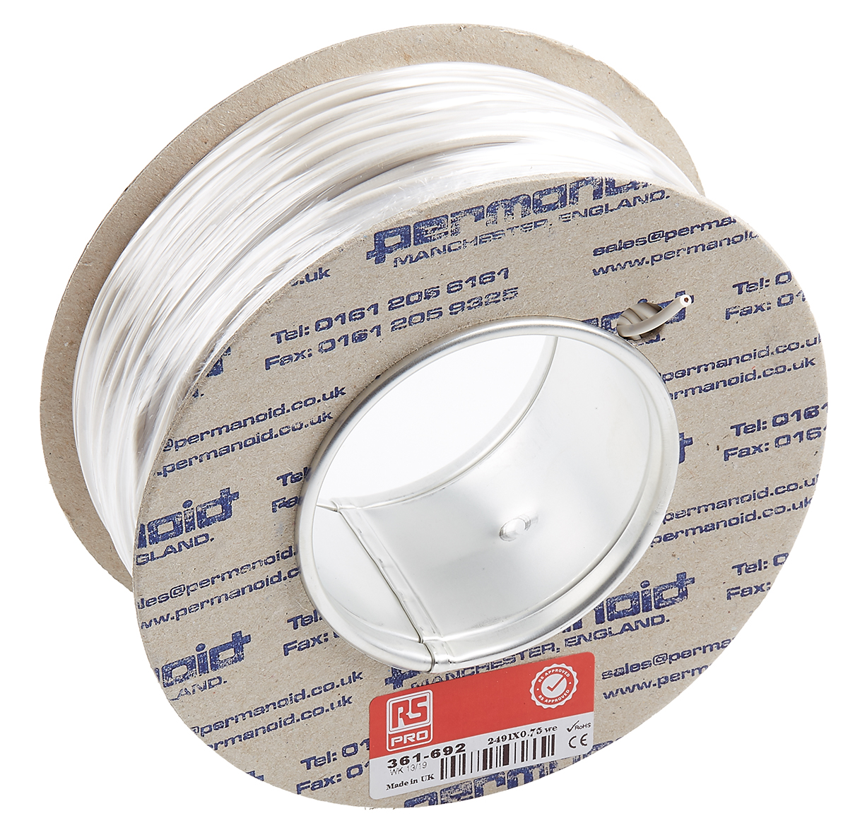 This is White 100m PVC 2491X Equipment Wire 0.75 mm² CSA 750 V 18 AWG manufactured by RS Pro. The manufacturer part number is 361-692. Features 18 awg - American Wire Gauge. Its harmonised code is h05v-k . Whereas the outer sheath is manufactured from pvc material. Its outer diameter is 2.7mm. Additionally, it contains 24 strands. The product complies with all safety standards, such as bs 6004, bs en 50525-2-31, rohs compliant. Moreover, this cable has a single core shape. The core strands are 24/0.2 mm. The insulated wall has 0.6mm thick. It has a maximum operating temperature of +70°c. The wire has a 2491x style. Moreover, the product has a nominal 500 v voltage rating. The item is shielded with a unshielded. Its accurate length is 100m. It has a robust pvc insulation material. The conductor is made from annealed copper material. The product 2491x, is a highly preferred choice for users. The strand size includes 0.2mm. The sheath has an adorable white colour. The product has 0.75mm² cross section area. Whereas, the minimum operating temperature of the product is -15°c. It has h05v-k European harmonized code .
