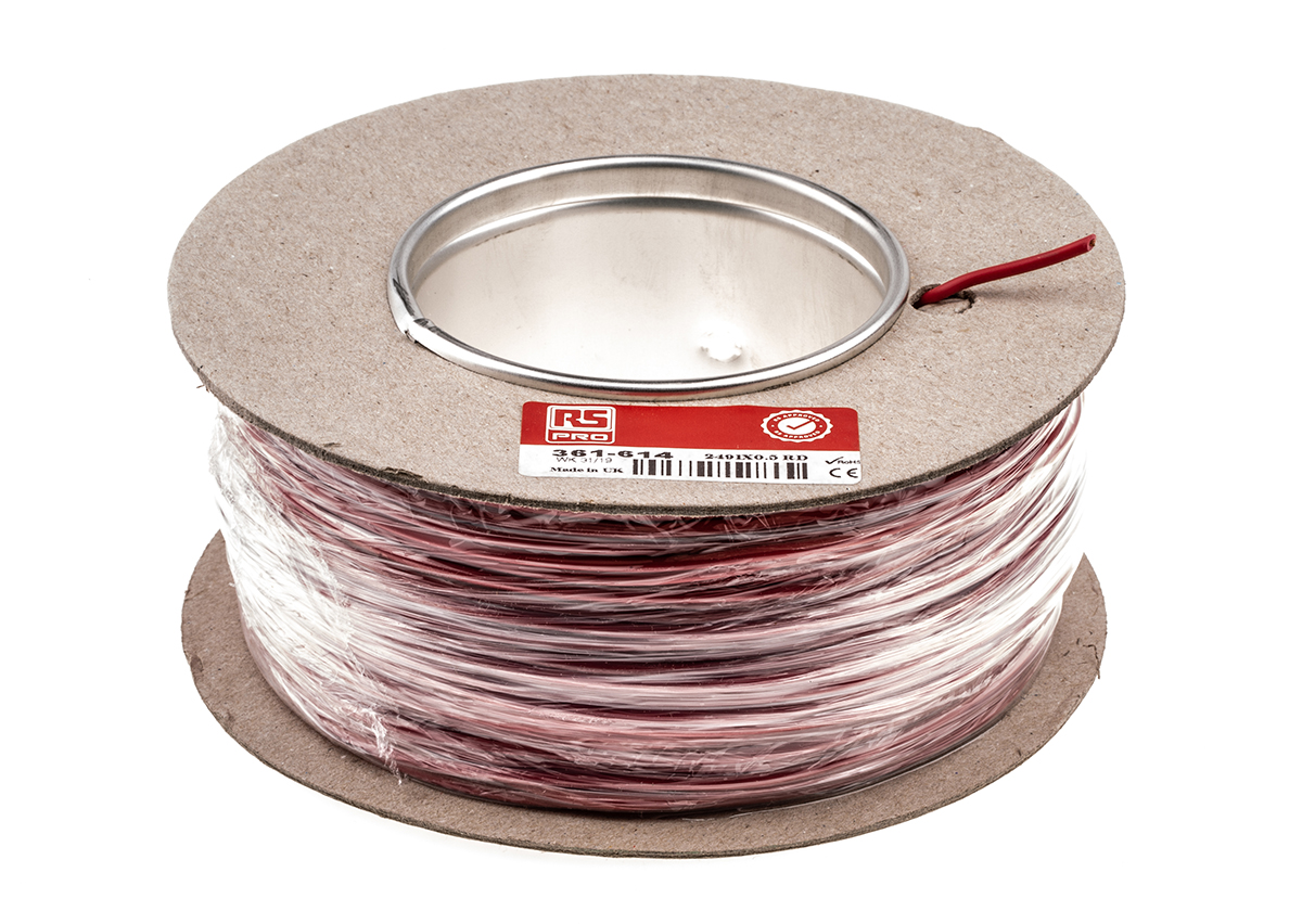 This is Red 100m PVC 2491X Equipment Wire 0.5 mm² CSA 750 V 20 AWG manufactured by RS Pro. The manufacturer part number is 361-614. Features 20 awg - American Wire Gauge. Its harmonised code is h05v-k . Whereas the outer sheath is manufactured from pvc material. Its outer diameter is 2.5mm. Additionally, it contains 16 strands. The product complies with all safety standards, such as bs 6004, rohs compliant. Moreover, this cable has a single core shape. The core strands are 16/0.2 mm. The insulated wall has 0.6mm thick. It has a maximum operating temperature of +70°c. The wire has a 2491x style. The product has 0.5mm² cross section area. Moreover, the product has a nominal 500 v voltage rating. The item is shielded with a unshielded. Its accurate length is 100m. The conductor is made from annealed copper material. The product 2491x, is a highly preferred choice for users. The strand size includes 0.2mm. The sheath has an adorable red colour. It has a robust pvc insulation material. Whereas, the minimum operating temperature of the product is -15°c. It has h05v-k European harmonized code .