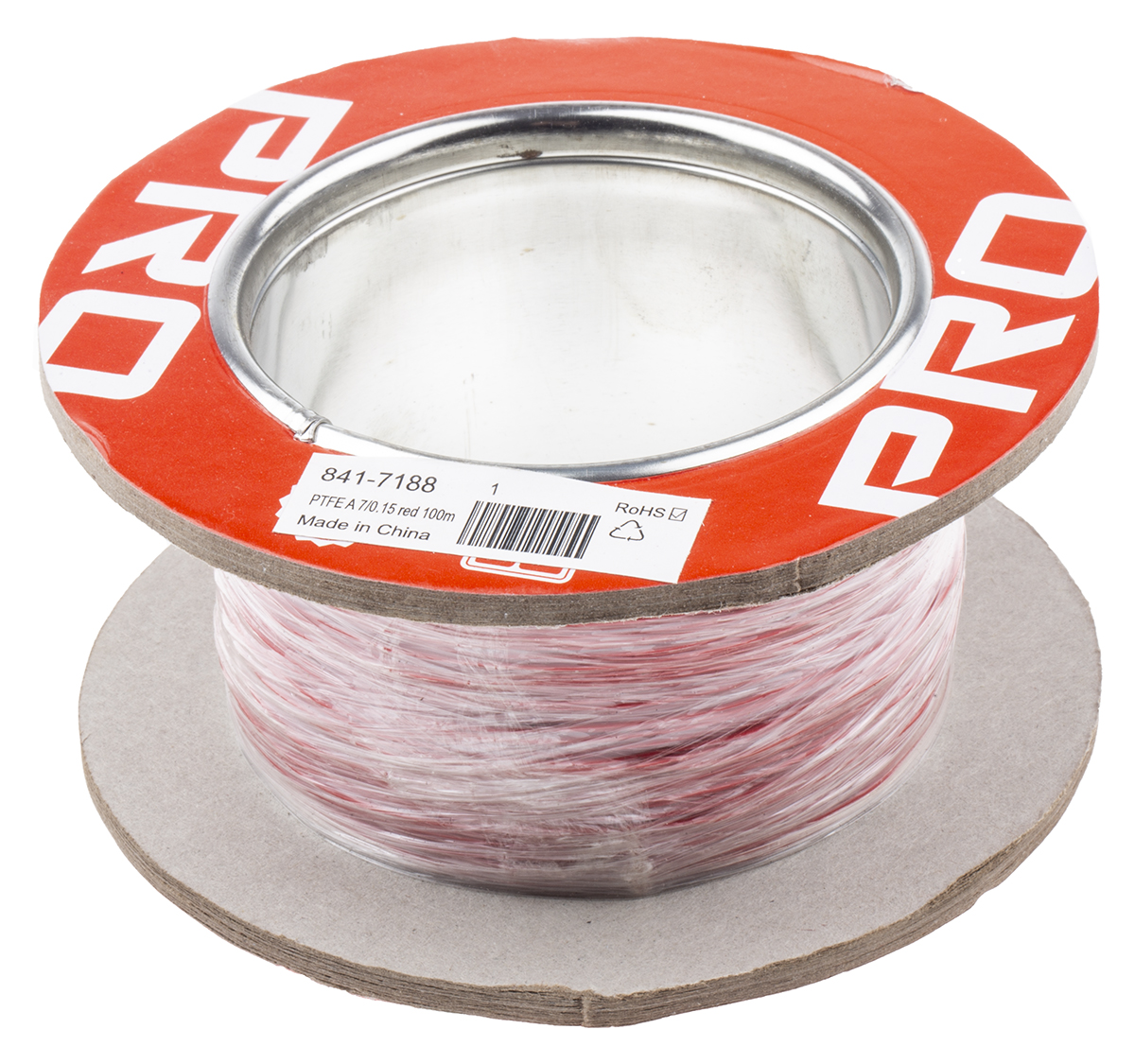 This is 0.124 mm² PTFE Equipment Wire 100m 300 V Silver Plated Copper 7 Strands BS 3G 210:1996 manufactured by RS Pro. The manufacturer part number is 841-7188. Features 26 awg - American Wire Gauge. Additionally, it contains 7 strands. The product complies with all safety standards, such as bs 3g 210:1996. Moreover, the product has a nominal 300 v voltage rating. The conductor is made from silver plated copper material. The wire has a bs3g210 style. The core strands are 7/0.15 mm. The sheath has an adorable red colour. The insulated wall has 0.15mm thick. Its accurate length is 100m. A bespoke product is highly resistant to fuels, gasoline, hydraulic fluid, lubricants, oils. It has a robust ptfe insulation material. Whereas, the minimum operating temperature of the product is -75°c. It has a maximum operating temperature of 200°c. The strand size includes 0.15mm. The product has 0.12mm² cross section area.