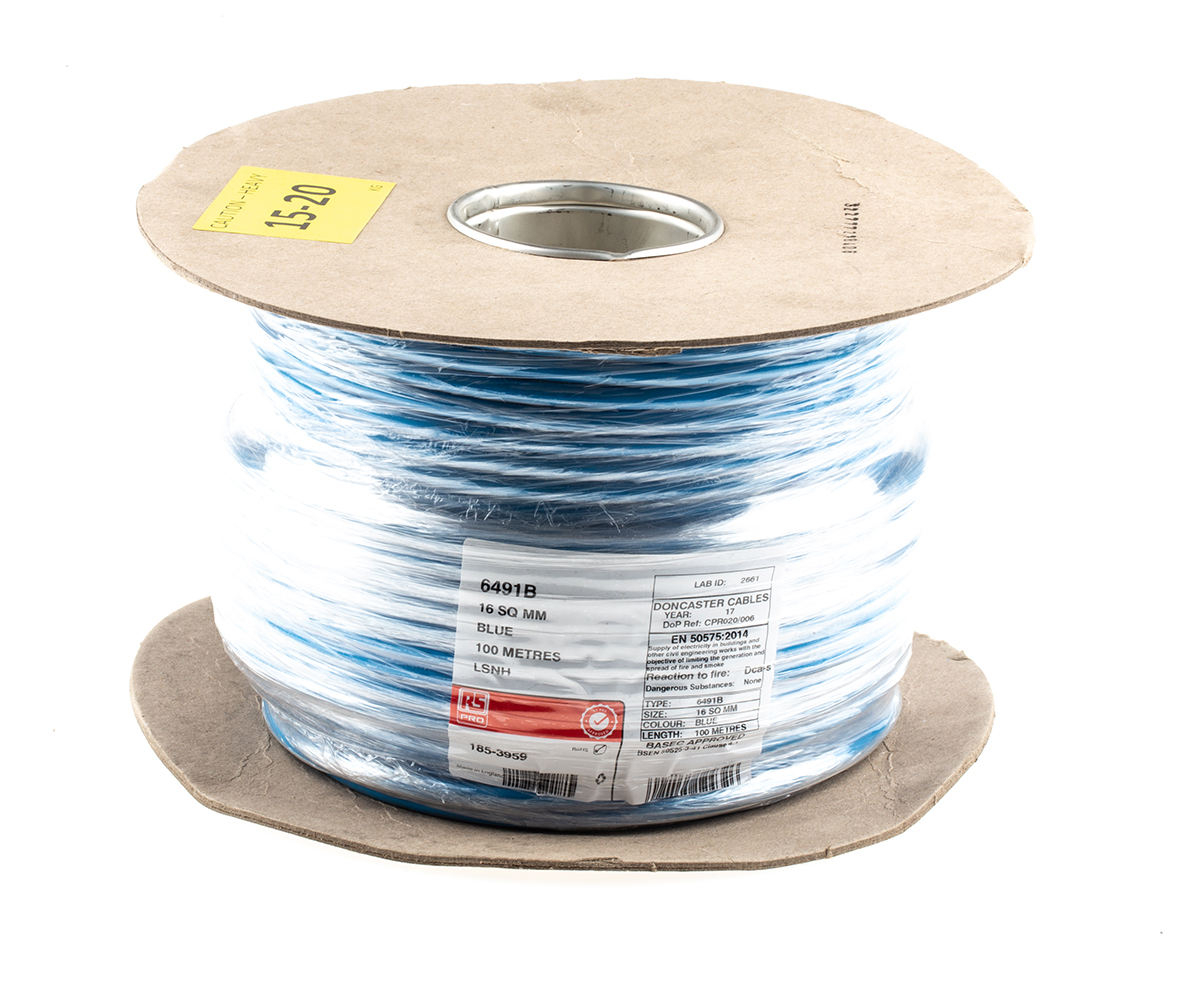 This is 6491B 16.0 LSNH BLUE 100 MTR RLS manufactured by RS PRO. The manufacturer part number is 185-3959. Its harmonised code is h07z-r . Whereas the outer sheath is manufactured from lszh material. Its outer diameter is 8mm. Additionally, it contains 7 strands. The product complies with all safety standards, such as bs en 50525-3-41:2011 clause 4.1. Moreover, this cable has a single core shape. The core strands are 7/1.7 mm. The insulated wall has 1mm thick. It has a maximum operating temperature of 90°c. The product has 16mm² cross section area. Moreover, the product has a nominal 450 v dc, 750 v ac voltage rating. Its accurate length is 100m. The conductor is made from copper material. The product 6491b, is a highly preferred choice for users. The strand size includes 1.7mm. It is a typical conduit cable. The sheath has an adorable blue colour. It has a robust lsnh ei5 insulation material. Whereas, the minimum operating temperature of the product is -15°c. It has h07v-r European harmonized code .