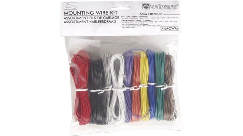 This is Multicoloured 0.2 mm² Hook Up Wire 24 AWG 60m PVC Insulation manufactured by Velleman Components. The manufacturer part number is K/MOWM. Features 24 awg - American Wire Gauge. Moreover, this cable has a round shape. The sheath has an adorable multicoloured colour. Its accurate length is 60m. The product has 0.2 mm² cross section area. It has a robust pvc insulation material.