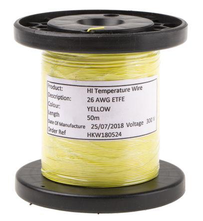 This is Yellow 50m ETFE MIL-W-81822/13 Equipment Wire 0.14 mm² CSA 300 V 26 AWG manufactured by RS Pro. The manufacturer part number is 801-4984. Features 26 awg - American Wire Gauge. The product complies with all safety standards, such as rohs compliant. Moreover, the product has a nominal 300 v voltage rating. The conductor is made from silver plated copper material. It has a maximum operating temperature of +160°c. The wire has a mil-w-81822/13 style. The core strands are 1/0.4 mm. The sheath has an adorable yellow colour. The insulated wall has 0.2mm thick. Its accurate length is 50m. It has a robust etfe insulation material. Whereas, the minimum operating temperature of the product is -65°c. Its outer diameter is 0.7mm. The product has 0.13 mm² cross section area.